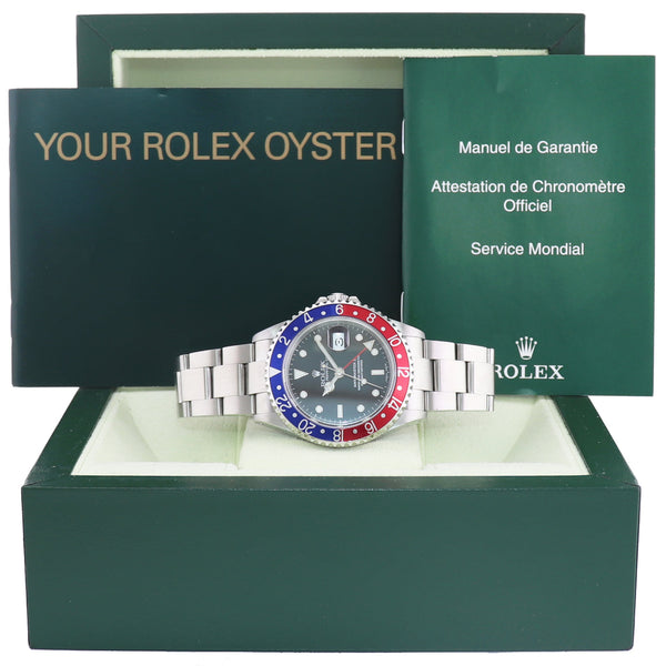 | Dial | Rolex Black Stick Index Dial with date at the 3 o'clock and a Red 24-hour GMT hand |