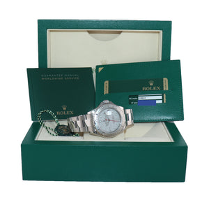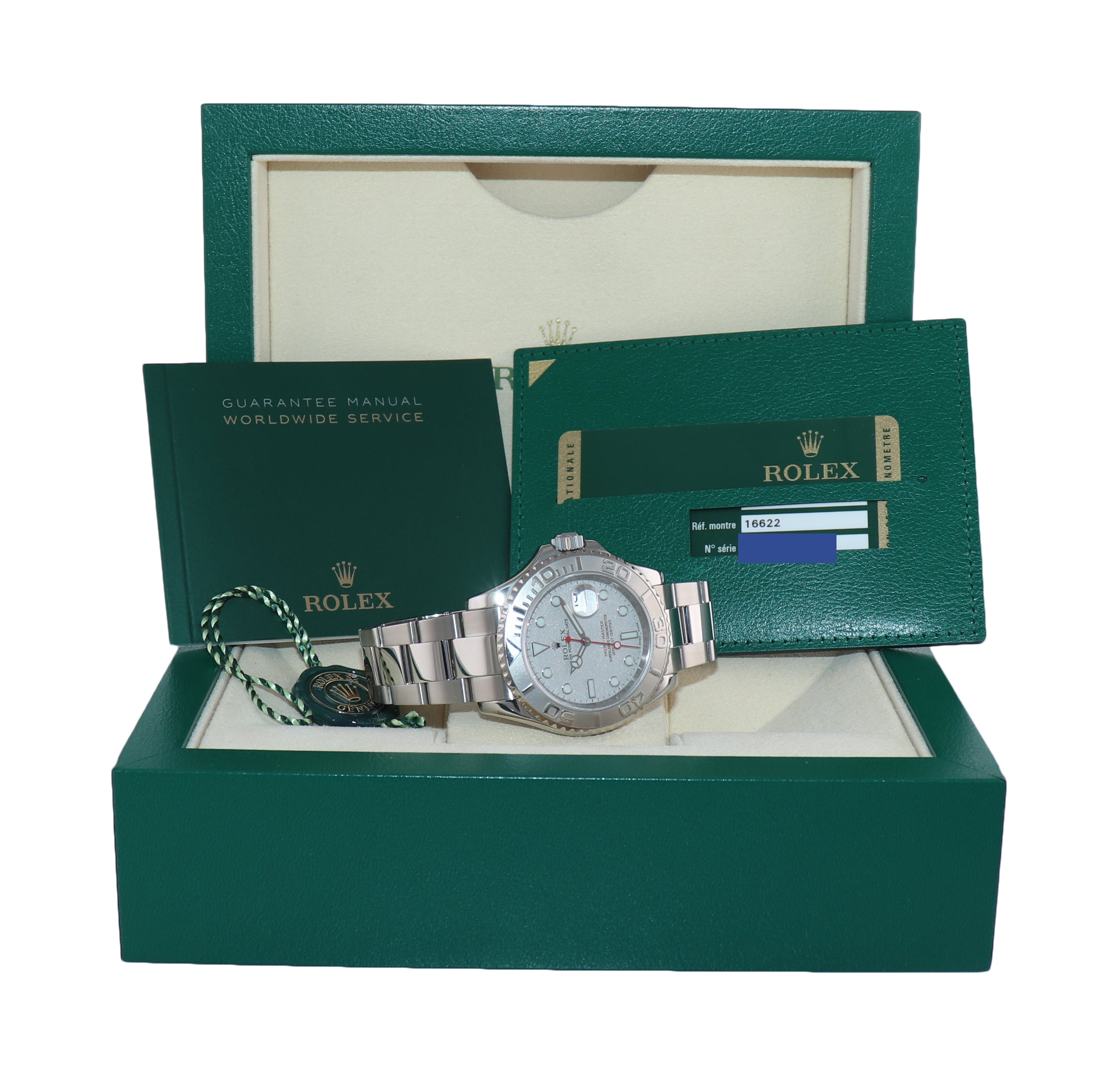 PAPERS MINT 2008 Rolex Yacht-Master 16622 Steel Platinum Oyster Engraved Rehaut Watch