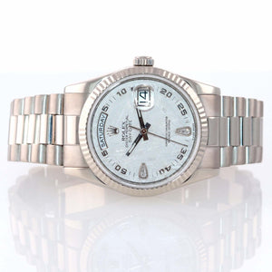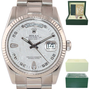 MINT 2009 Meteorite Factory Diamond Rolex Day-Date President 118239 18k White Gold 36mm Watch Engraved Rehaut