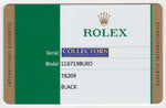 | Papers | Yes, this item will include the Original 2015 Rolex Warranty Card as well as a Collectors Coins & Jewelry certificate of appraisal and authenticity as per buyer request. |