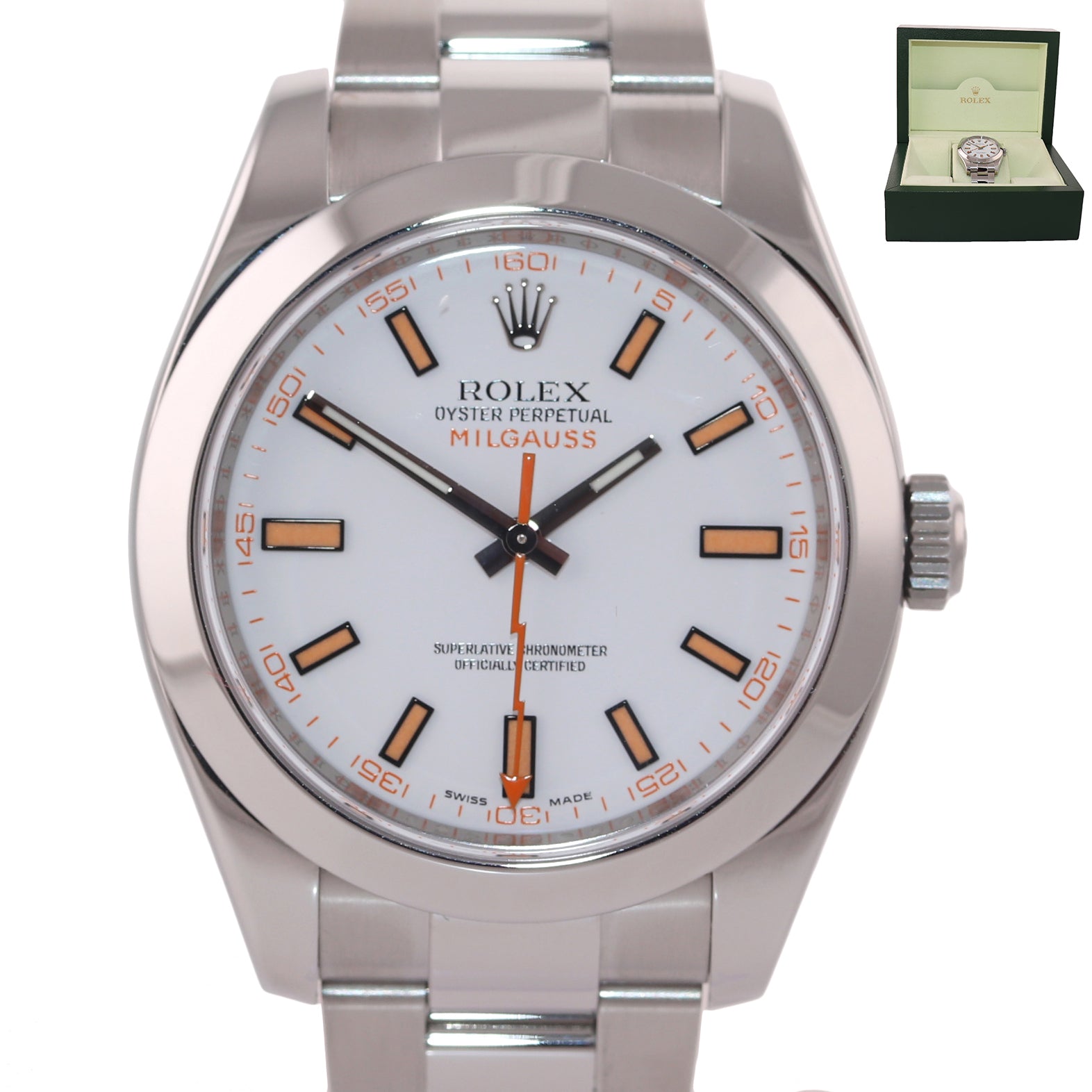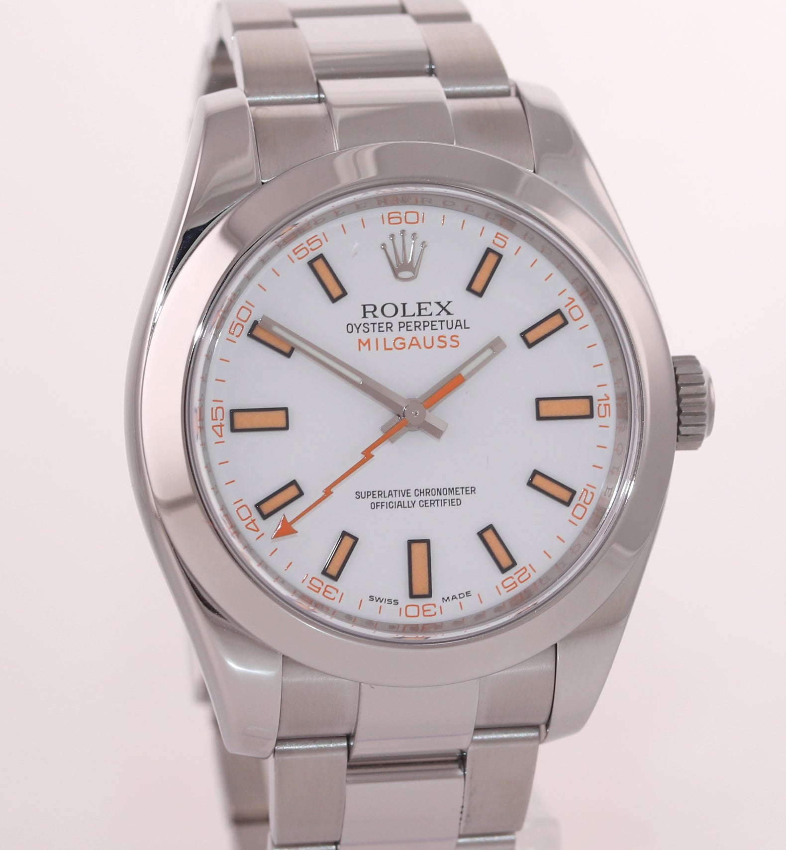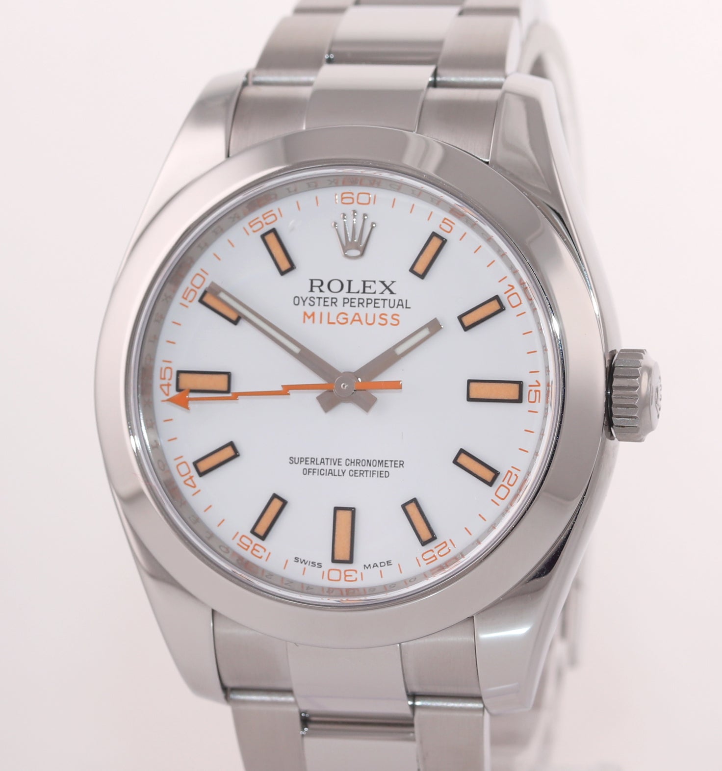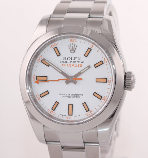 MINT Rolex Milgauss 116400 White Orange 40mm Steel Anti-Magnetic Watch