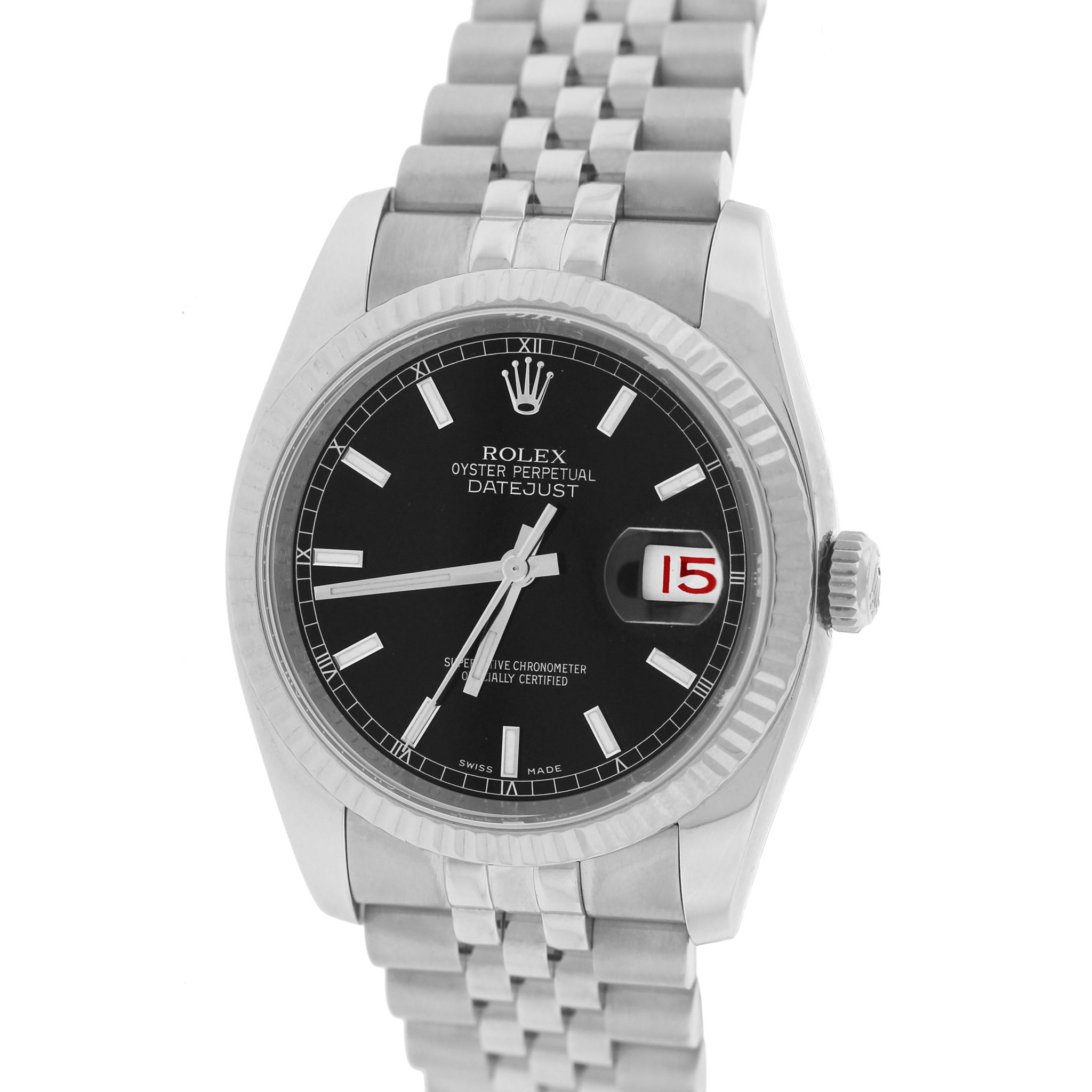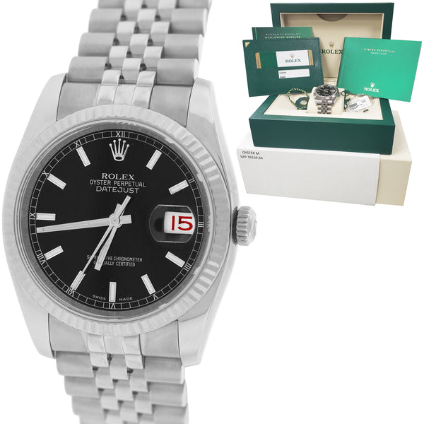 MINT 2017 Rolex DateJust Black 36mm RED ROULETTE Stainless Jubilee Watch 116234