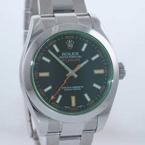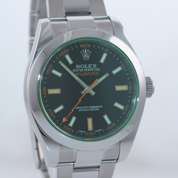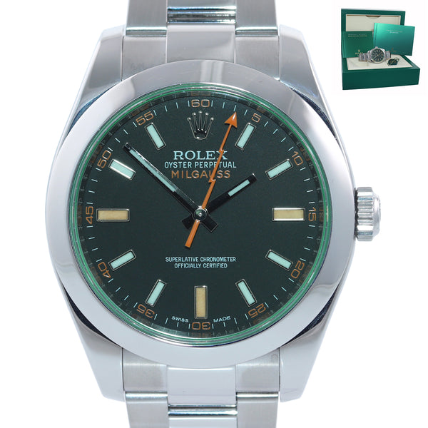 Rolex Milgauss Green Anniversary 116400 GV Steel Green Black Watch Box