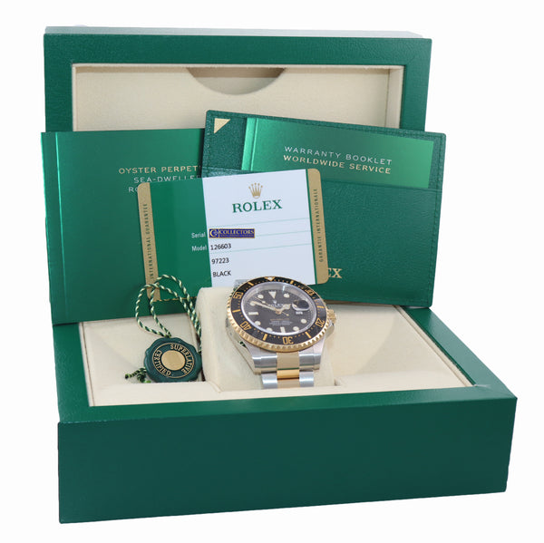 PAPERS 2019 Rolex Sea-Dweller 43mm Two-Tone Yellow Gold Black Watch 126603