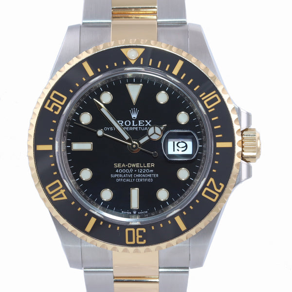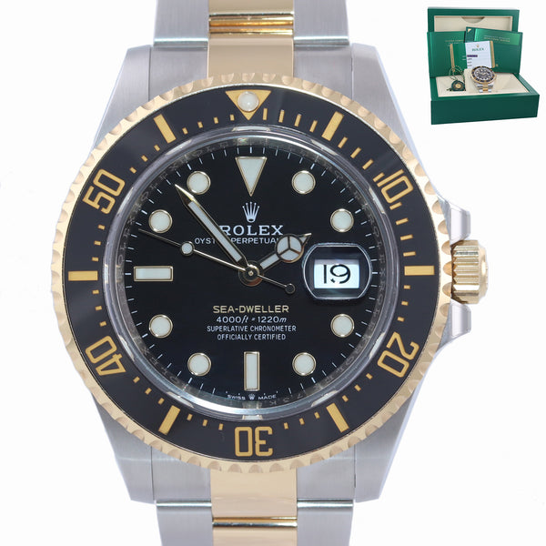 PAPERS MINT 2019 Rolex Sea-Dweller 43mm Two-Tone Yellow Gold Black Watch 126603