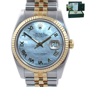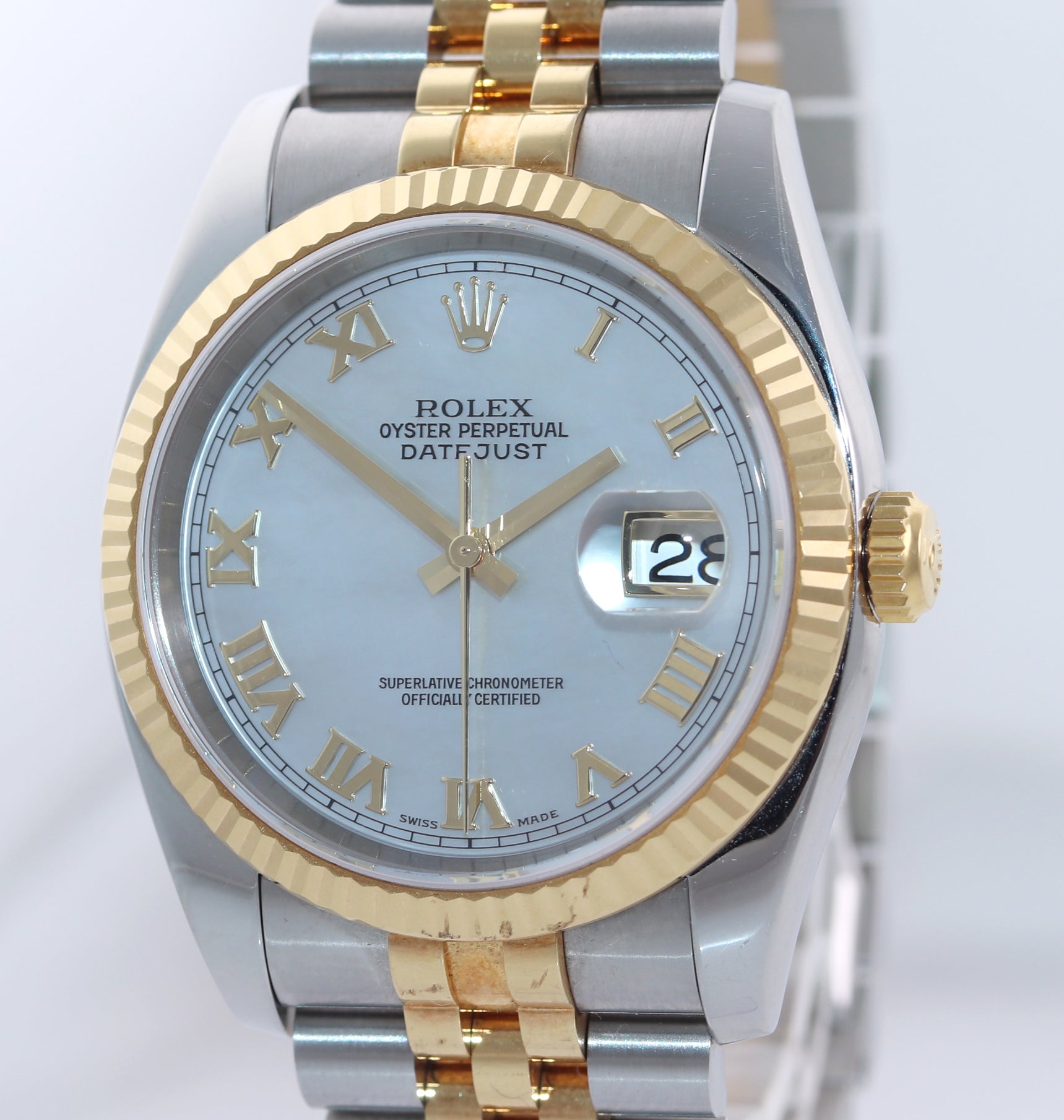 MINT PAPERS Rolex DateJust Jubilee 36mm MOP Roman 116233 18k Yellow Gold WatchPAP
