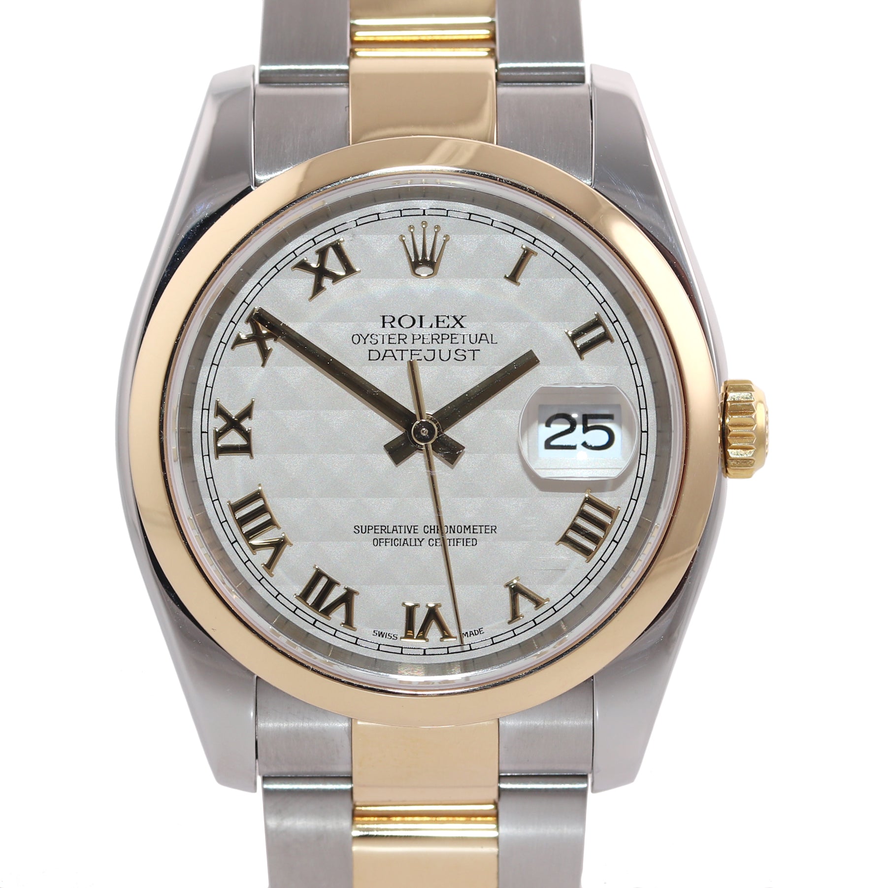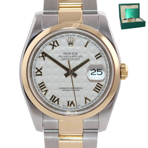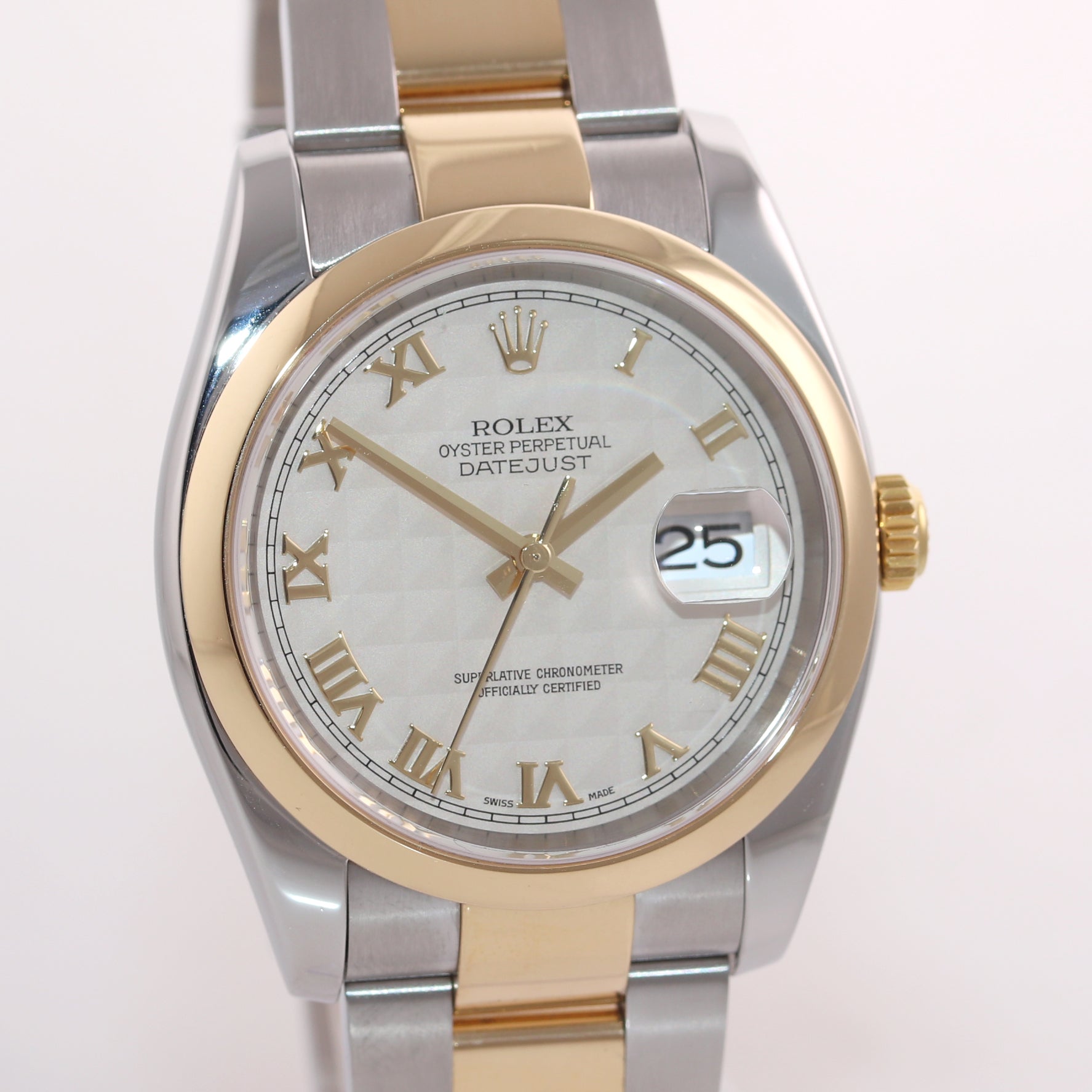 MINT Rolex DateJust Two Tone Oyster 36mm Ivory Pyramid 116203 18k Gold Watch Box