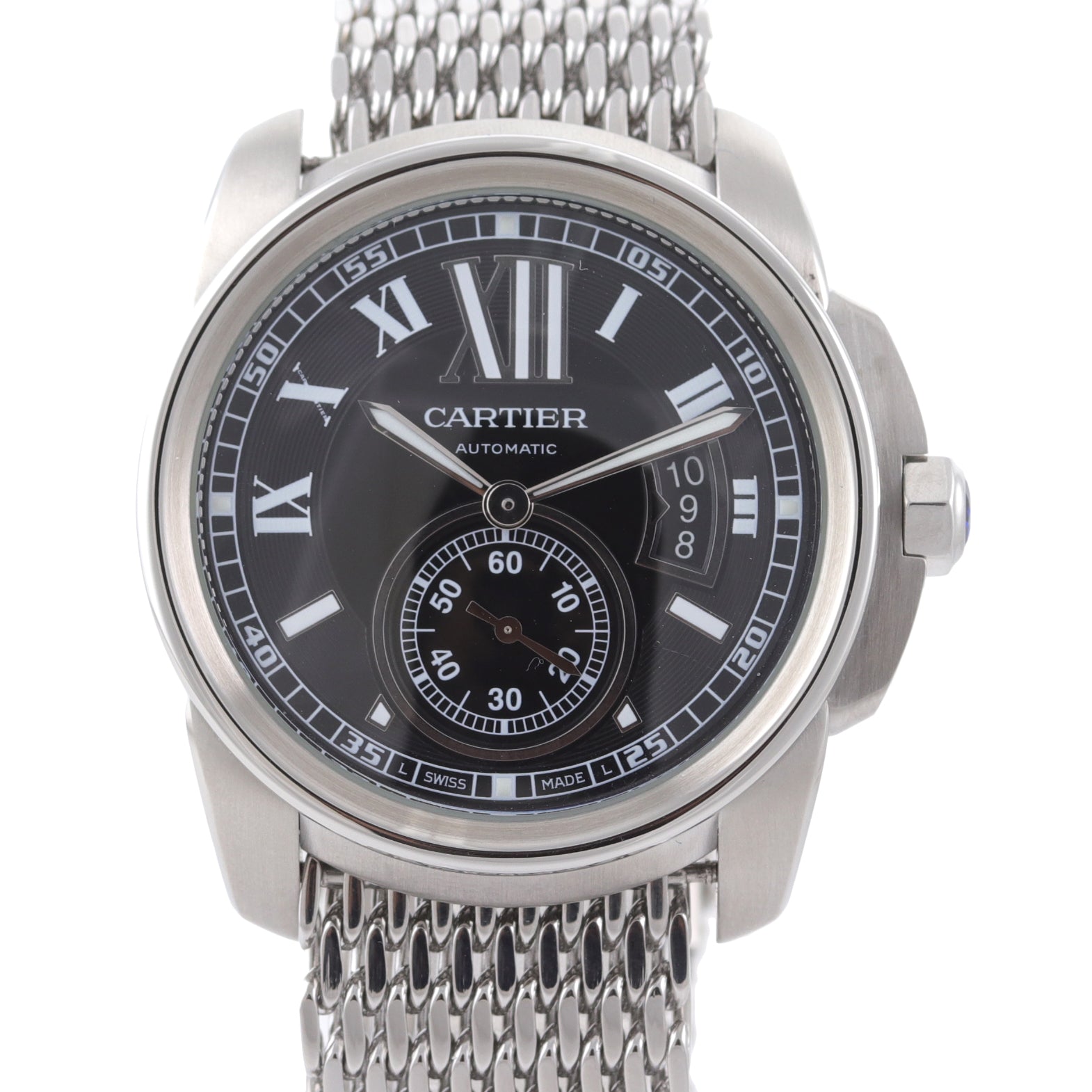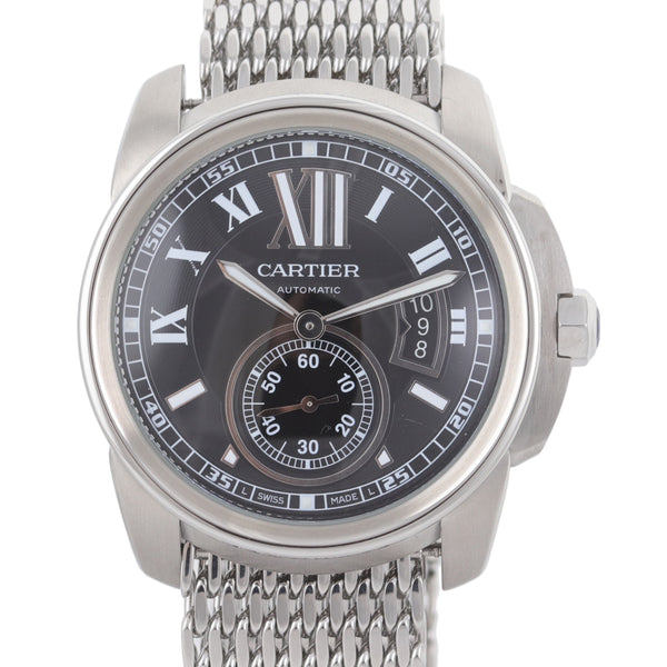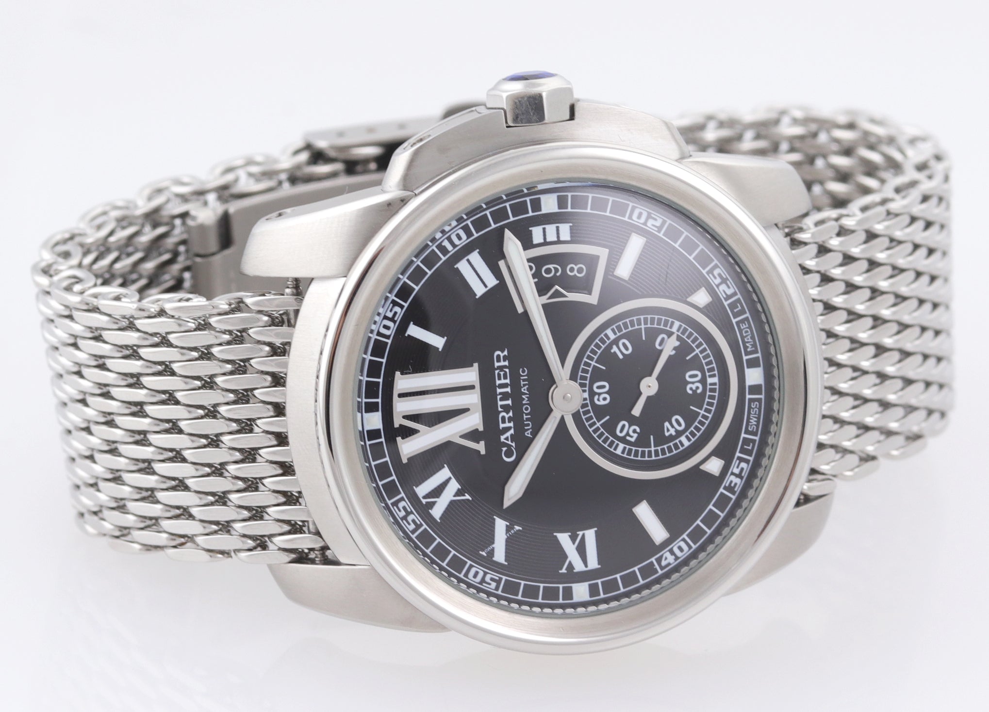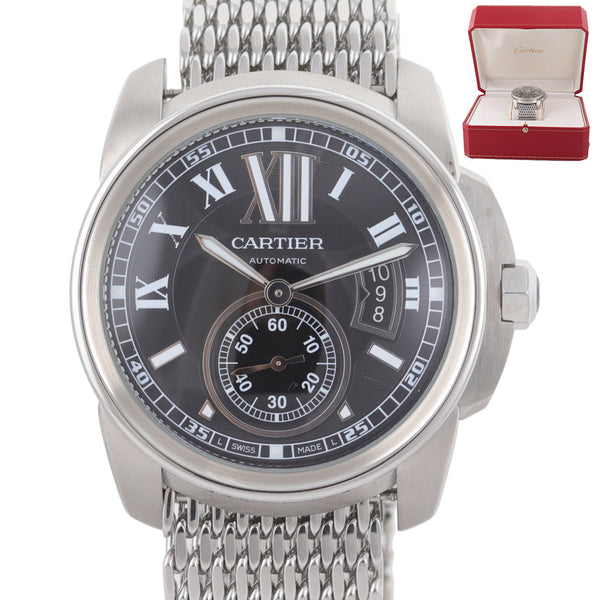 MINT Cartier Calibre 42mm Steel Black Roman Dial 3389 Automatic Date Watch