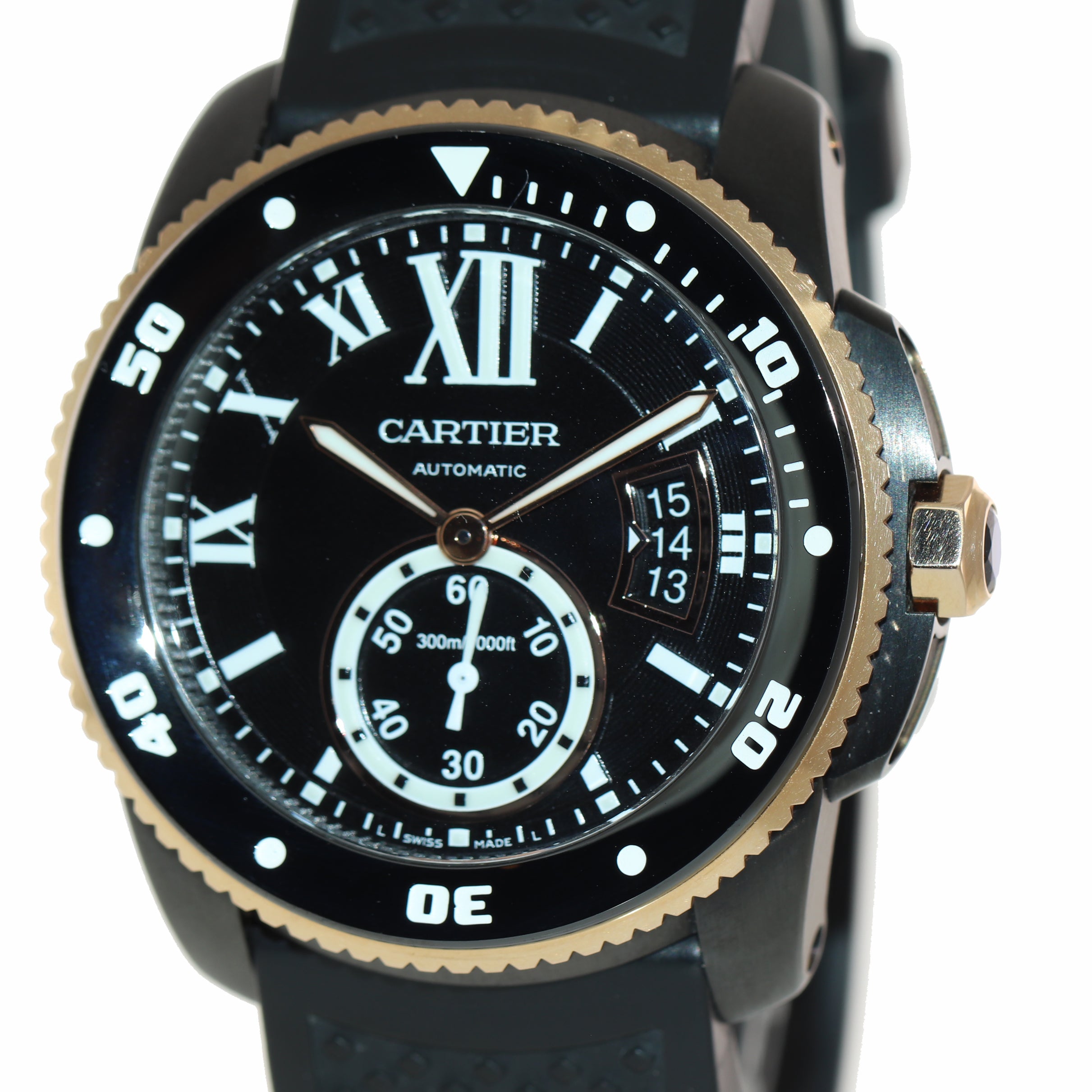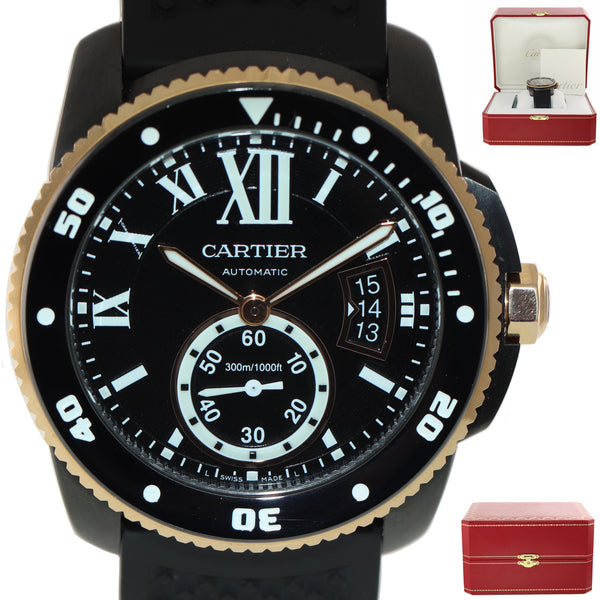 MINT Cartier Calibre Diver Rose Gold Black Steel 42mm Dive Watch W2CA0004 3729