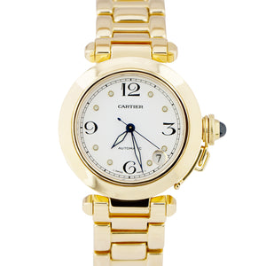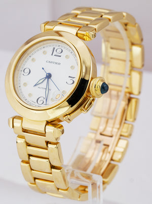 MINT Cartier Pasha 18K Yellow Gold Automatic Swiss 35mm White Dial Watch 1035