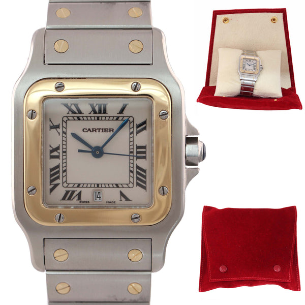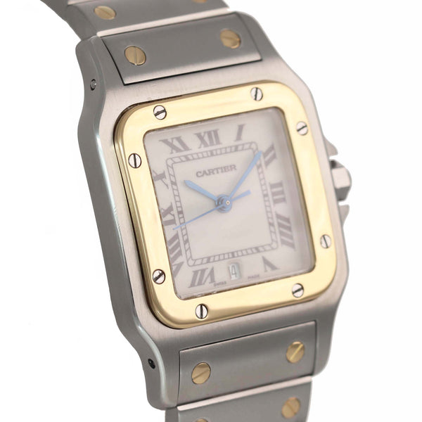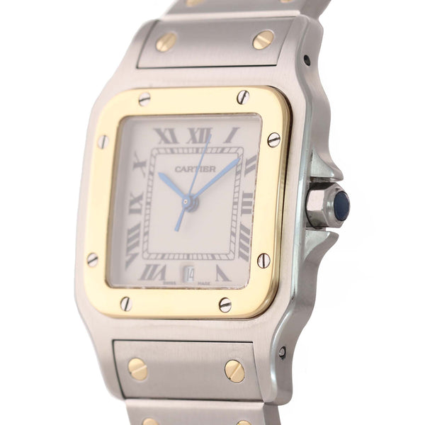 MINT Cartier Santos Galbee 1566 18k Gold Steel 29mm Roman Quartz Two Tone Watch