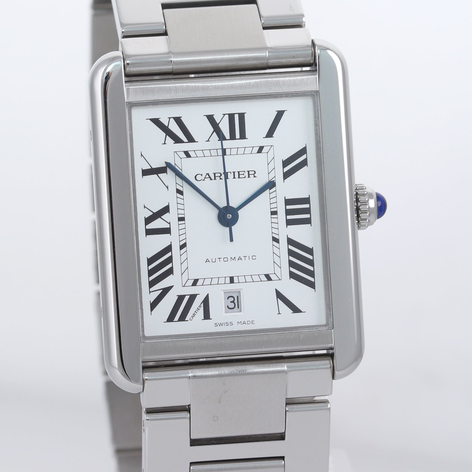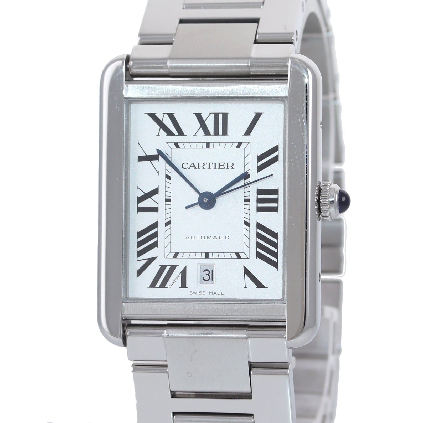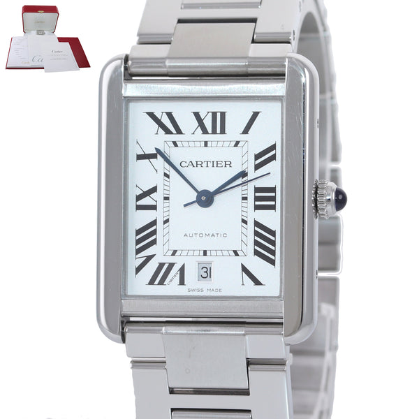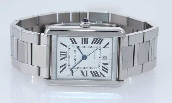 MINT Cartier Tank Solo XL 3800 Steel Automatic Silver Roman Date Watch W5200028