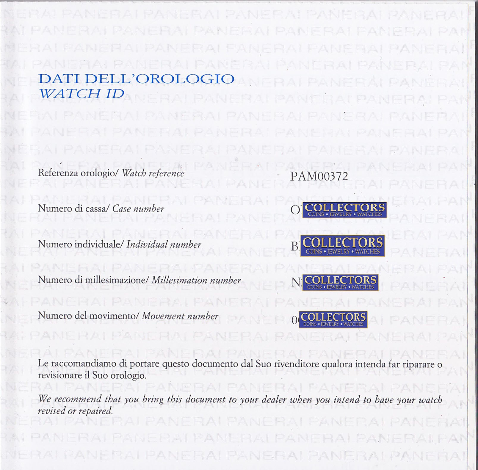 | Movement | Original Panerai Swiss Cal. P.3000 Manual Wind Movement |