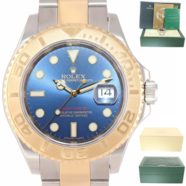 2014 MINT Rolex Yacht-Master 16623 Two Tone Steel Gold Blue Watch F9