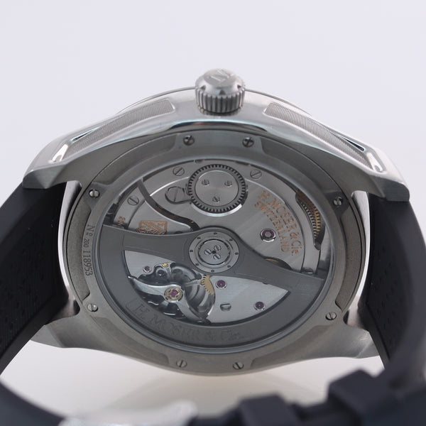 | Band | Original H. Moser & Cie. Leather Strap with a Stainless Steel Tang Buckle. (This also includes an original H. Moser & Cie. Black Rubber Strap as pictured) |
