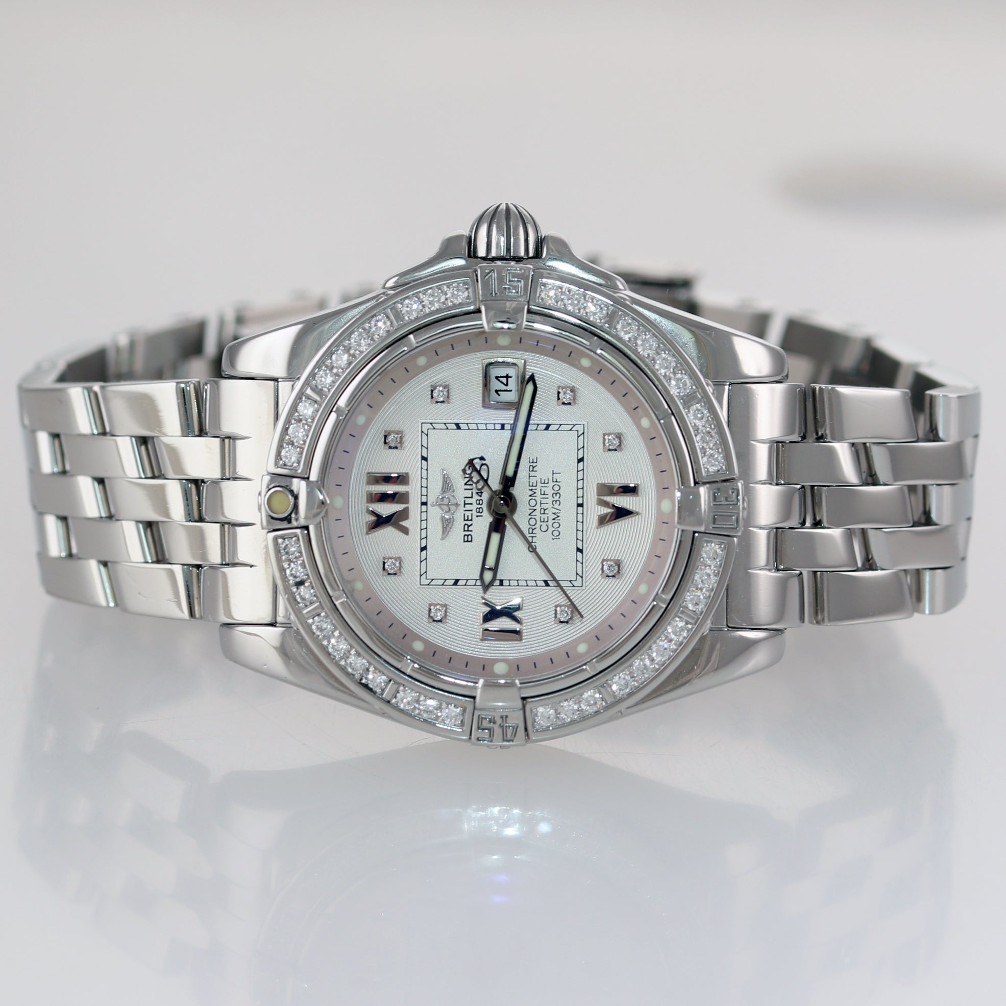 Ladies Breitling Windrider Cockpit A71356 Silver 32mm Steel Diamond Watch
