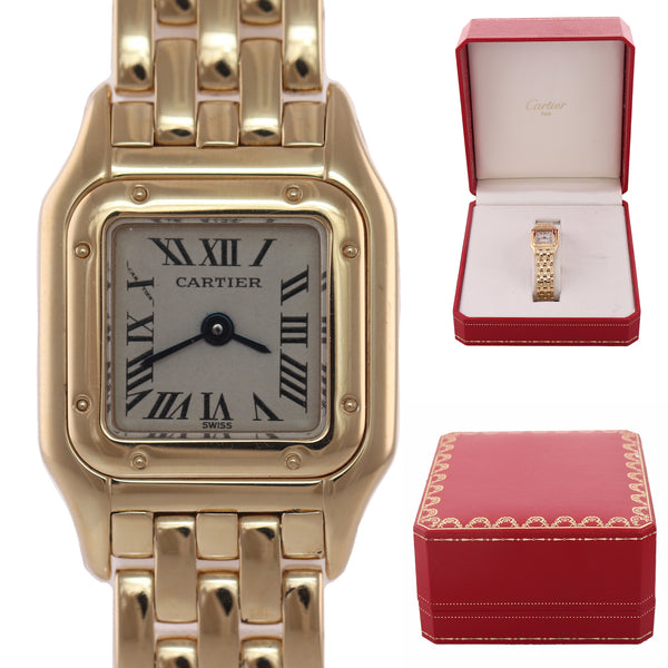 MINT Ladies Cartier Mini Panthere 1130 18K Yellow Gold Ivory Roman Quartz Watch