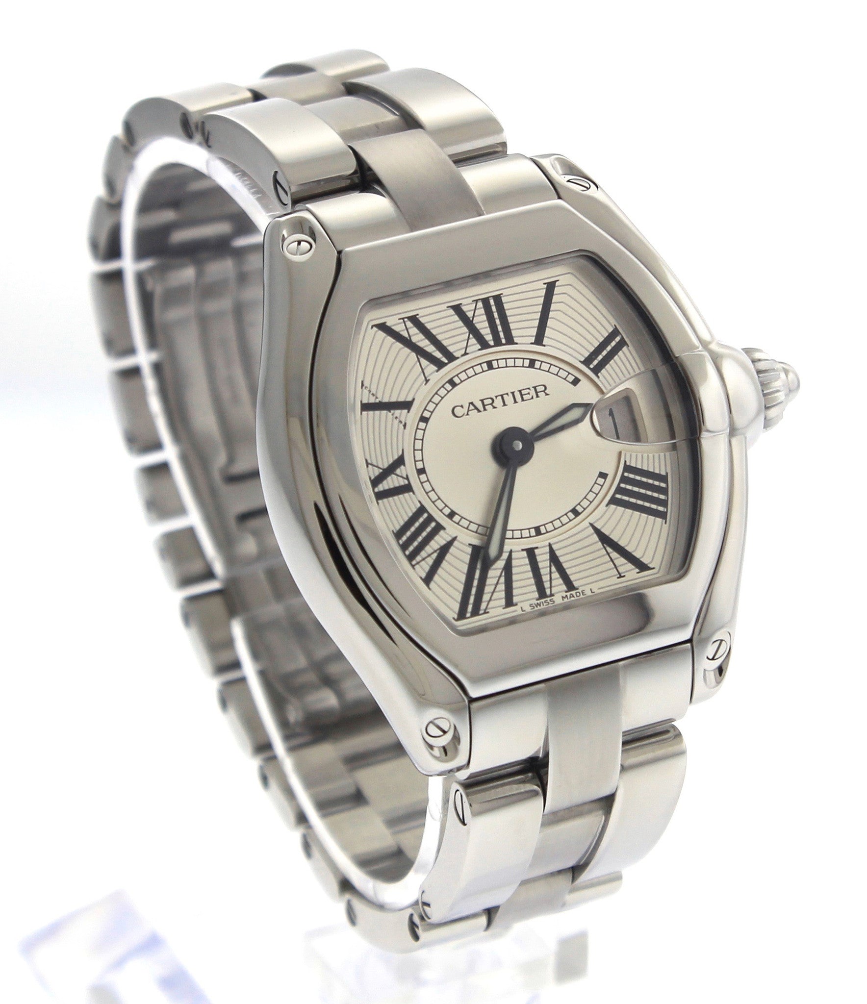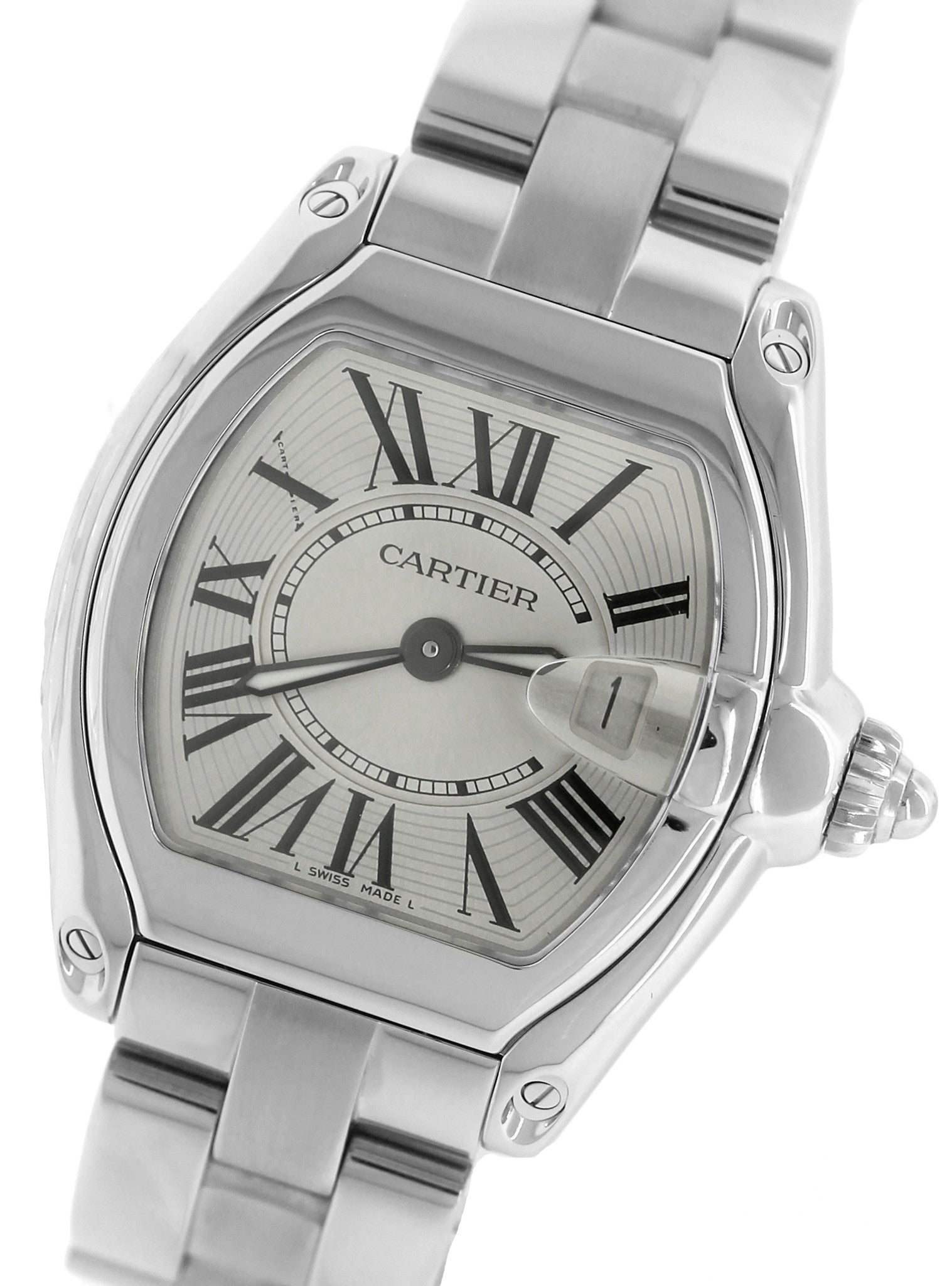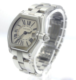 MINT Ladies Cartier Roadster Stainless Silver Quartz Roman Swiss Watch 2675