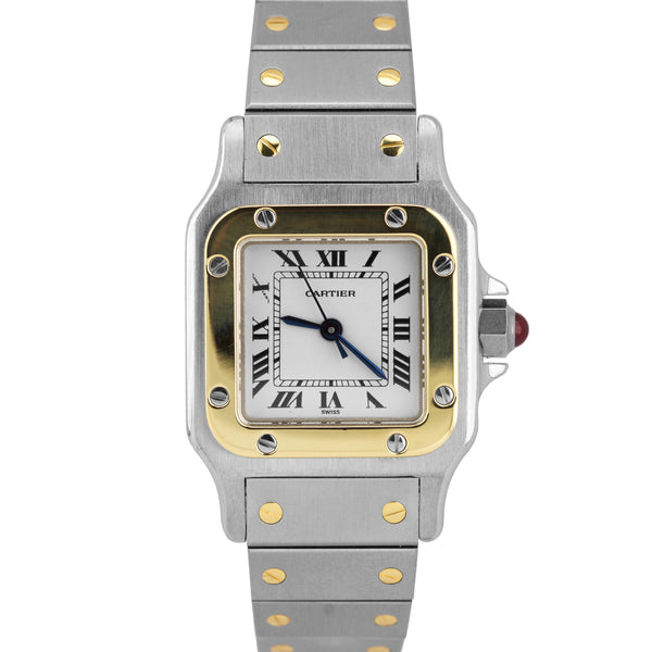 MINT Ladies Cartier Santos Carree 0902 Two-Tone Gold 23mm Automatic Swiss Watch