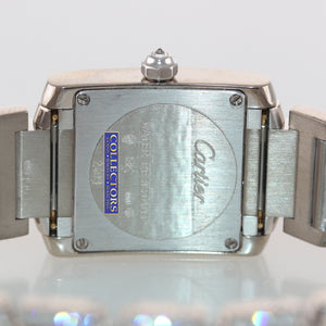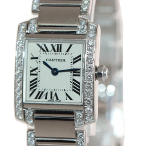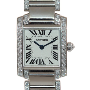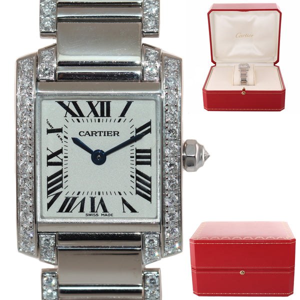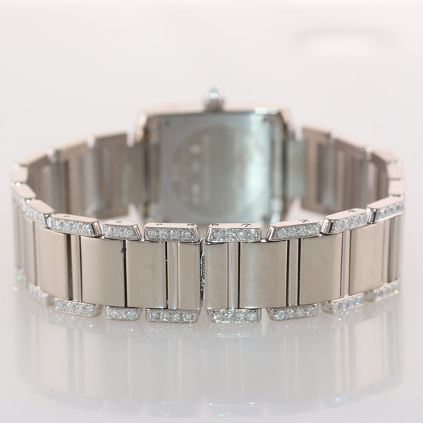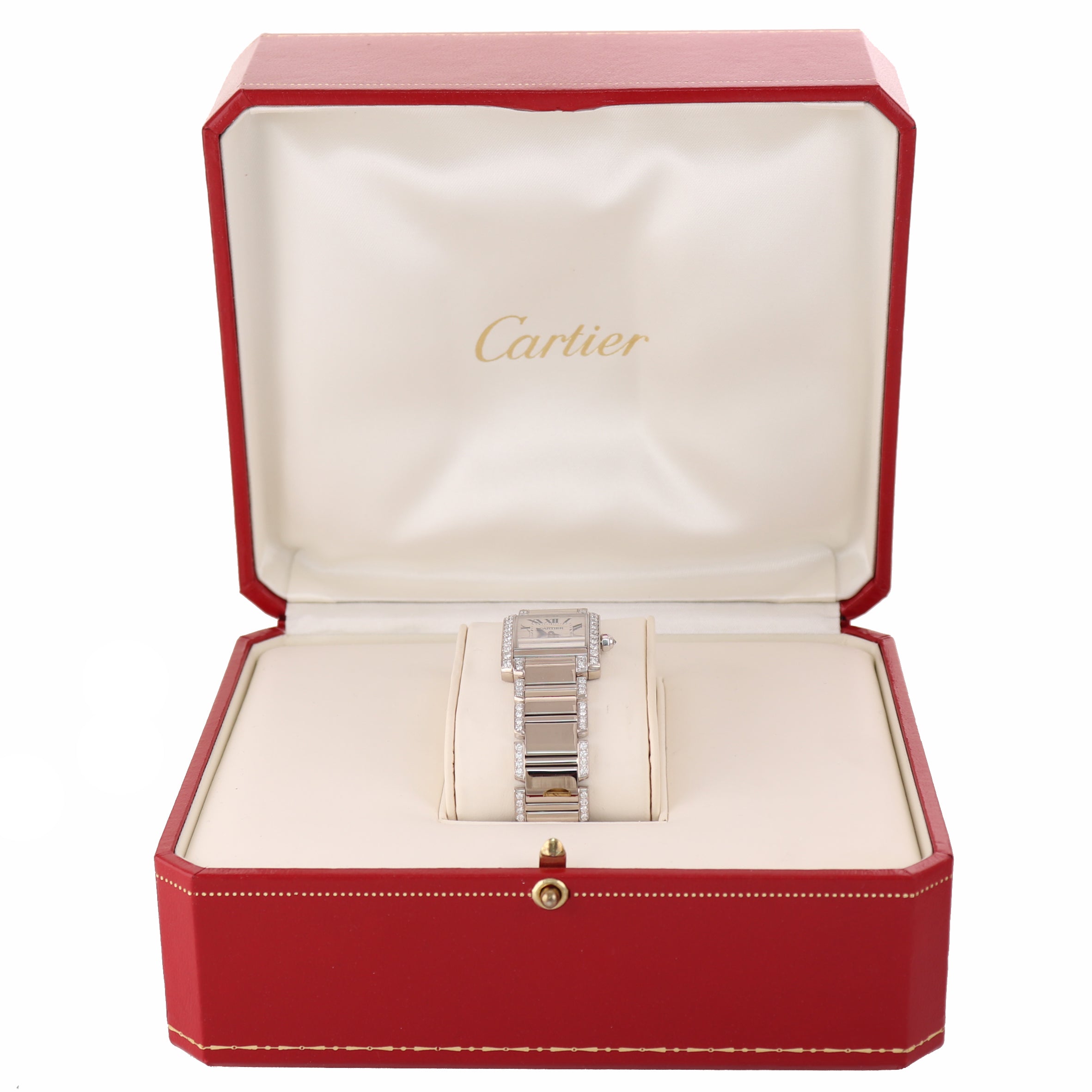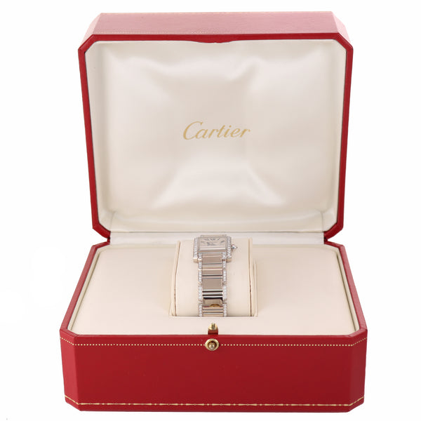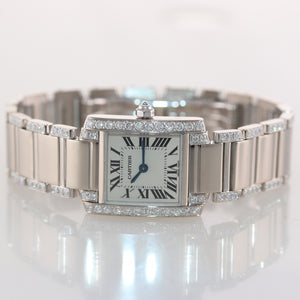 MINT Ladies Cartier Tank Francaise Factory Diamond 18k White Gold Watch 2403