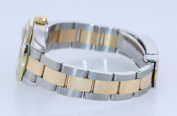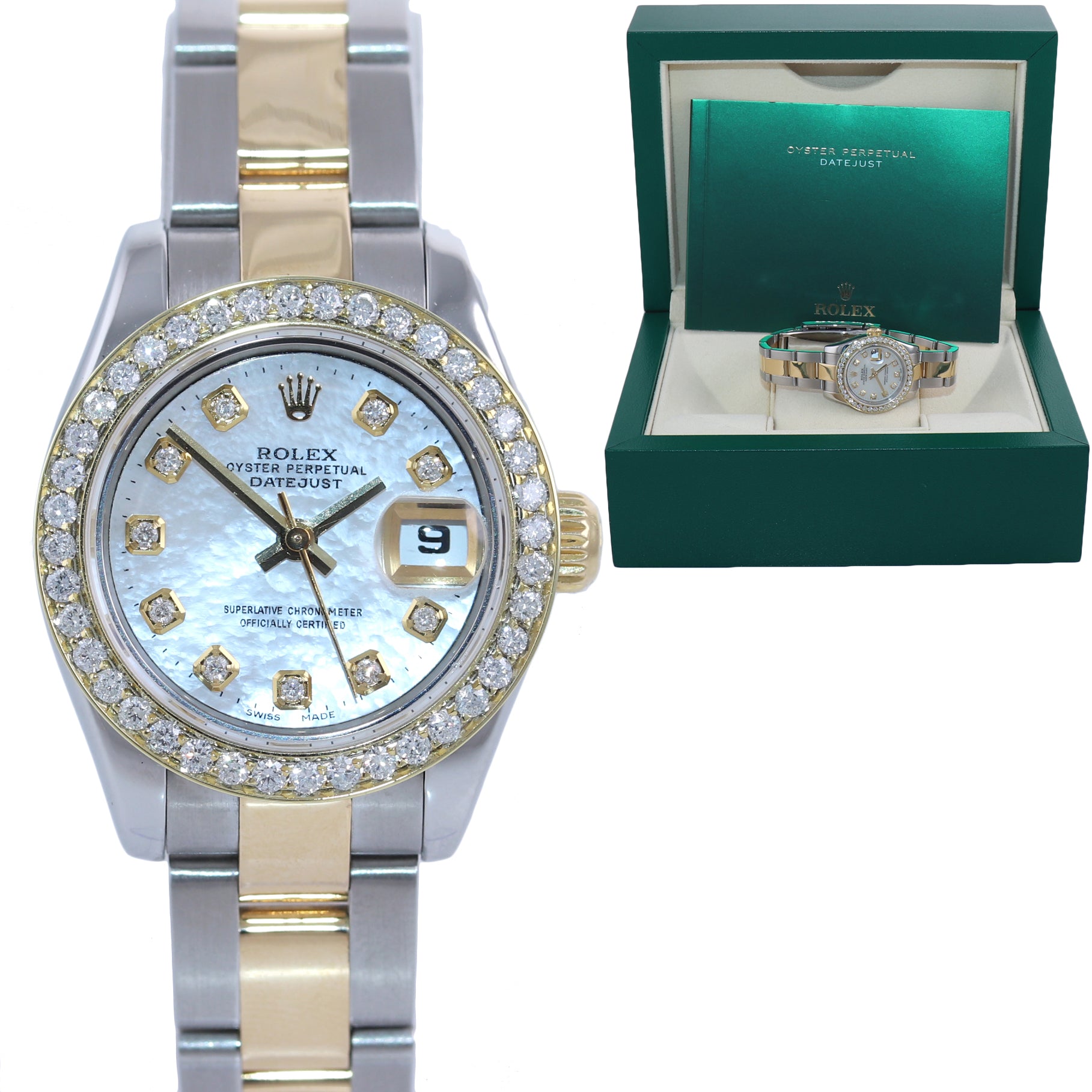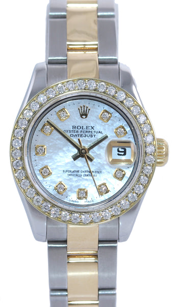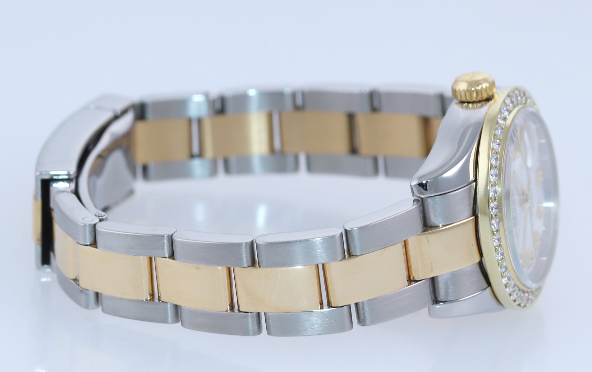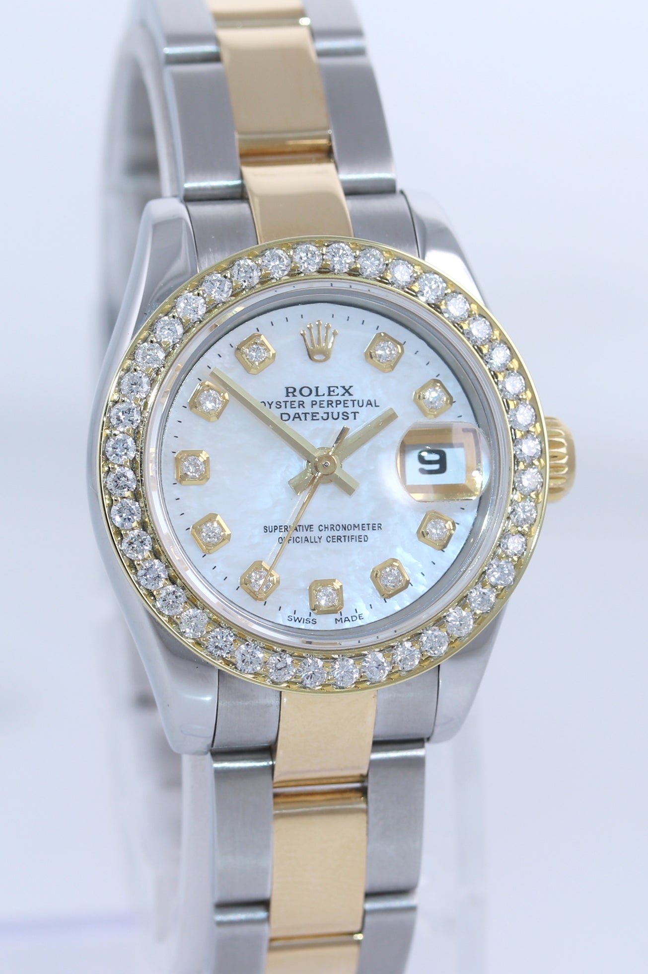 Ladies Rolex DateJust 26mm 179163 Yellow Gold Two Tone MOP Dial Diamond Watch