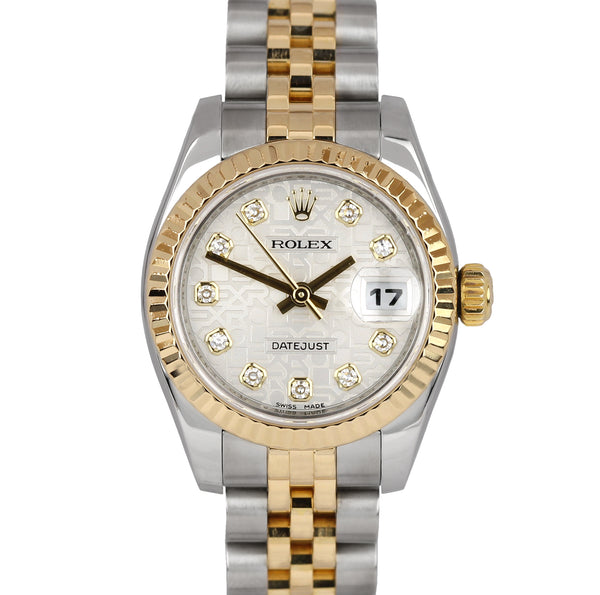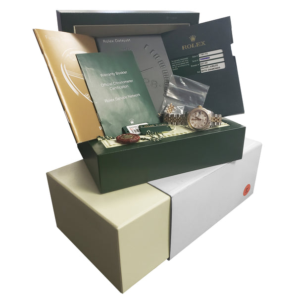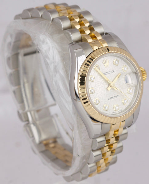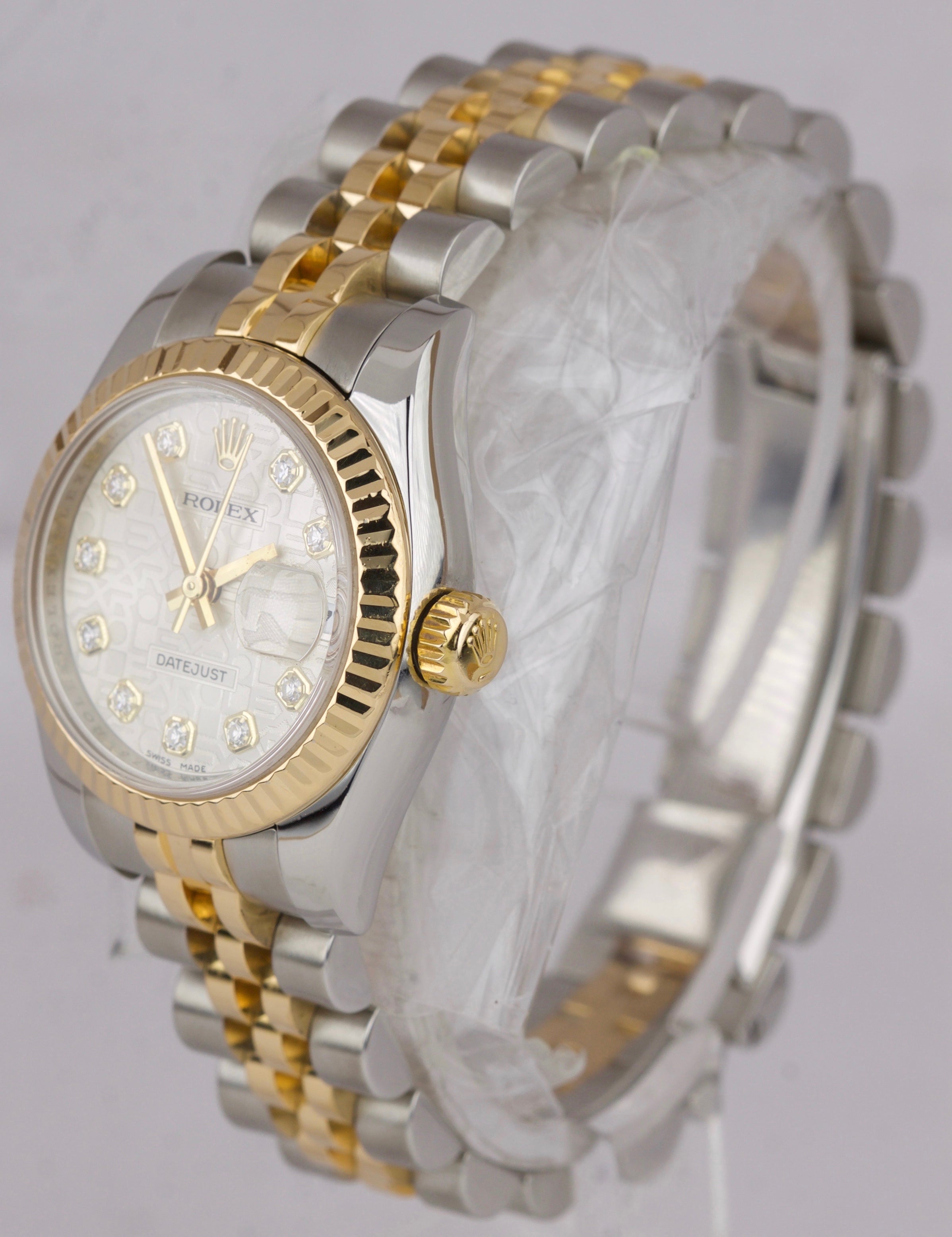MINT Ladies Rolex DateJust Diamond Two-Tone Gold 26mm Jubilee Watch 179173 B+P