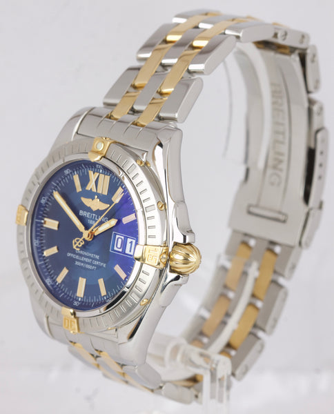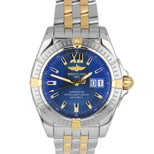 MINT Men's Breitling Galactic 41 Date Two-Tone Stainless Gold Blue B49350 Watch
