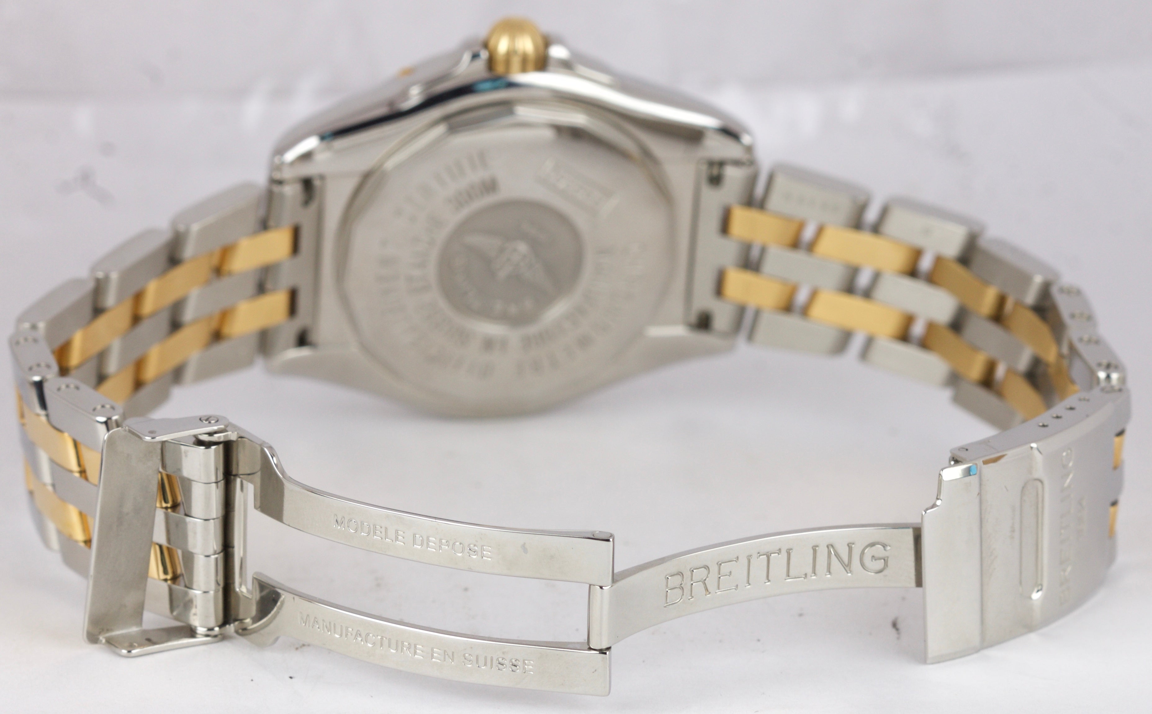 | Band | Original Breitling Stainless Steel / 18K Yellow Gold Pilot Bracelet with a Flip Lock Deployment Clasp |