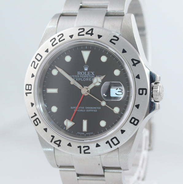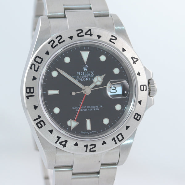 MINT NO HOLES Rolex Explorer II 16570 Serial Stainless Steel Black Date GMT 40mm Watch & Box