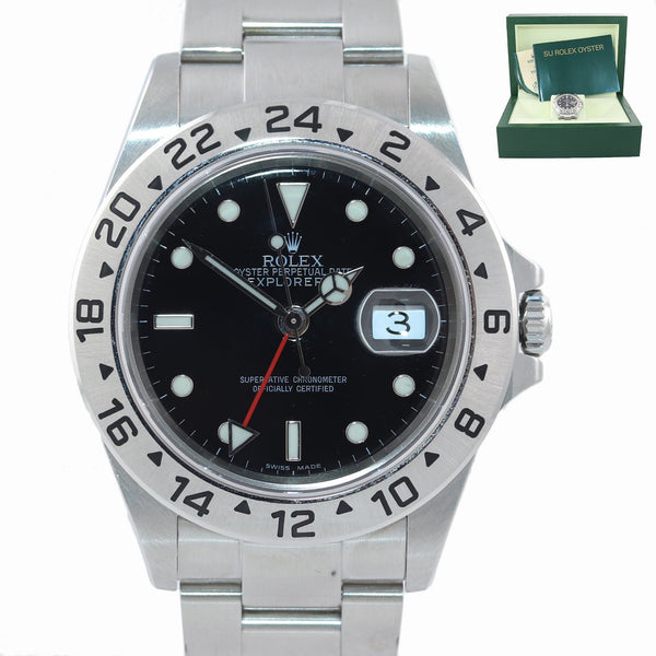 NO HOLES Rolex Explorer II 16570 Serial Stainless Steel Black Date GMT 40mm Watch & Box