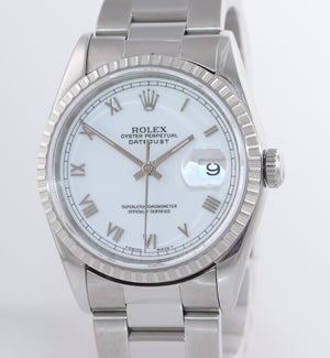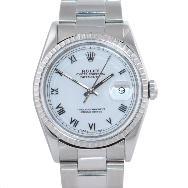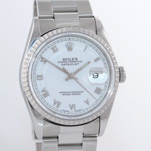 MINT Rolex DateJust 36mm 16220 Steel White Roman Date 36mm Oyster WatchCollectors