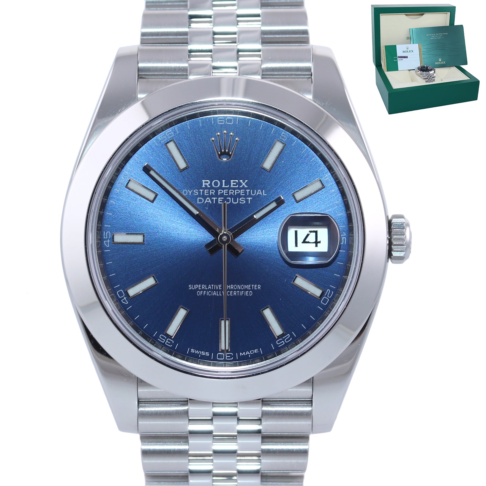 2018 MINT PAPERS Rolex DateJust 41 Steel 126300 Blue Dial Jubilee 41mm Watch