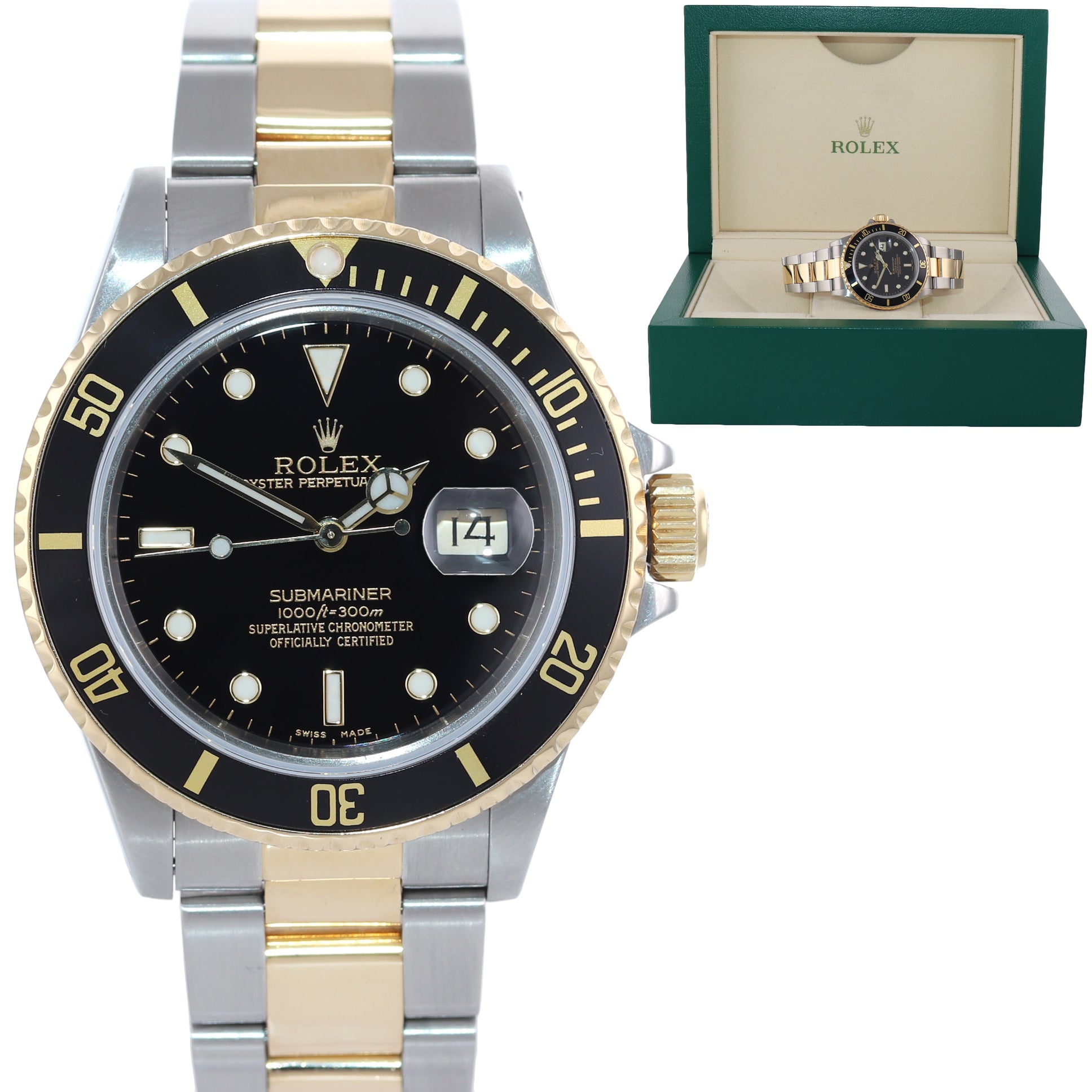 Rolex Submariner 18k Two-Tone 16803 Black Dial 40mm Watch Box