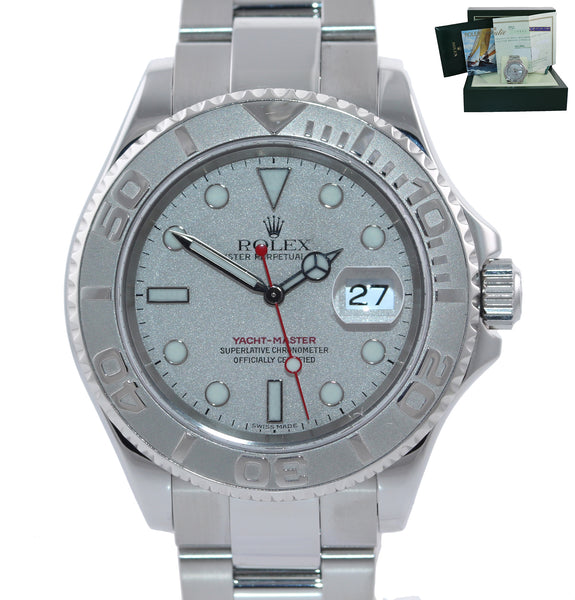 MINT WARRANTY PAPERS Rolex Yacht-Master 16622 Platinum Stainless Steel Date 40mm Watch w/ Box