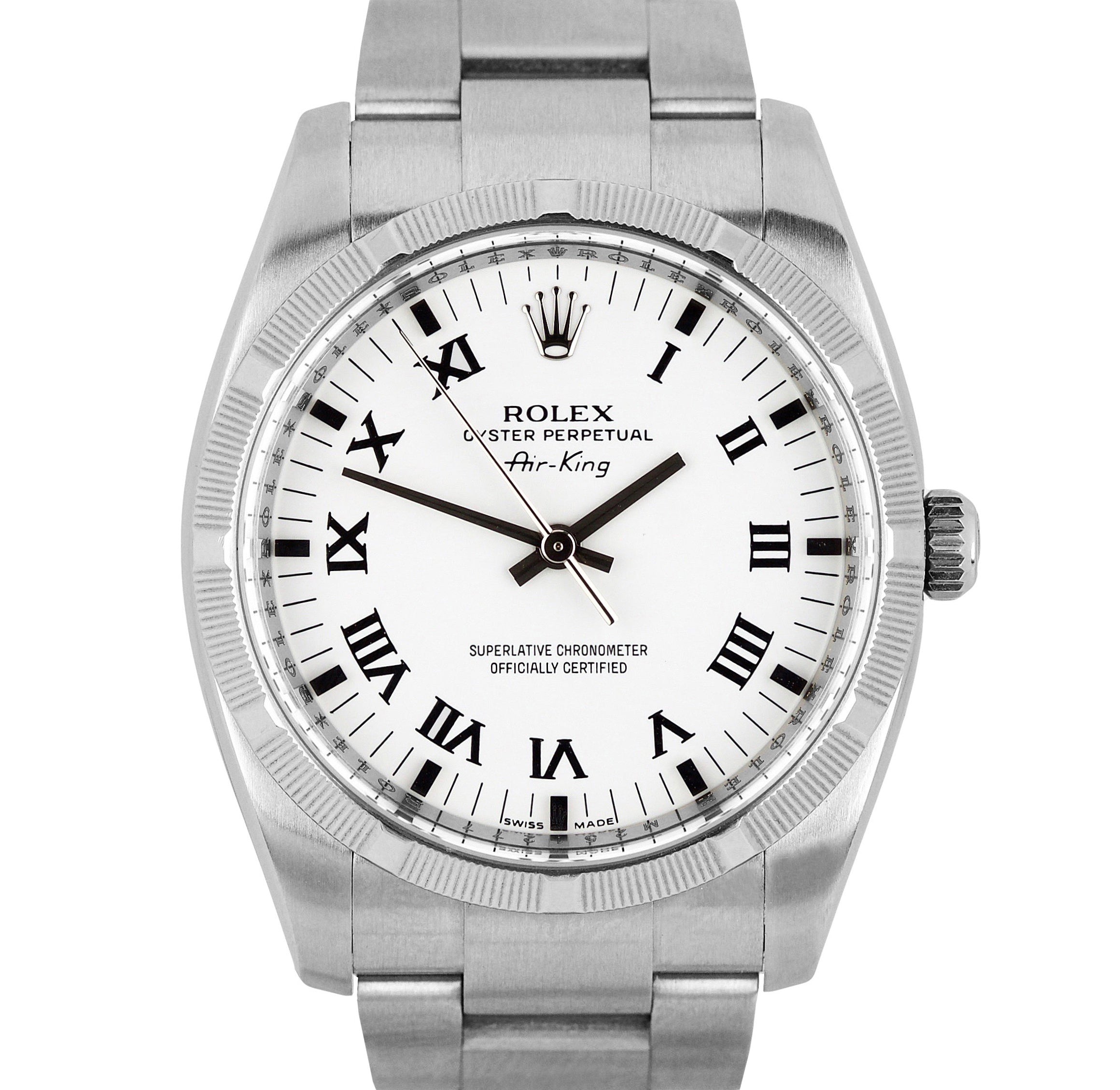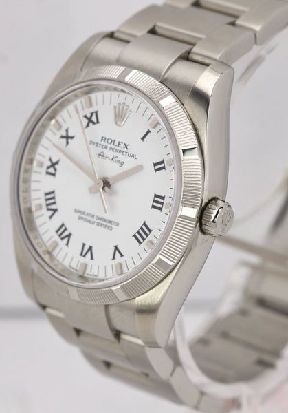Mint Rolex Air-King Oyster Perpetual Steel White Roman 114210 34mm Watch