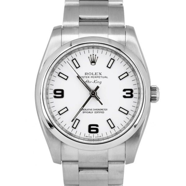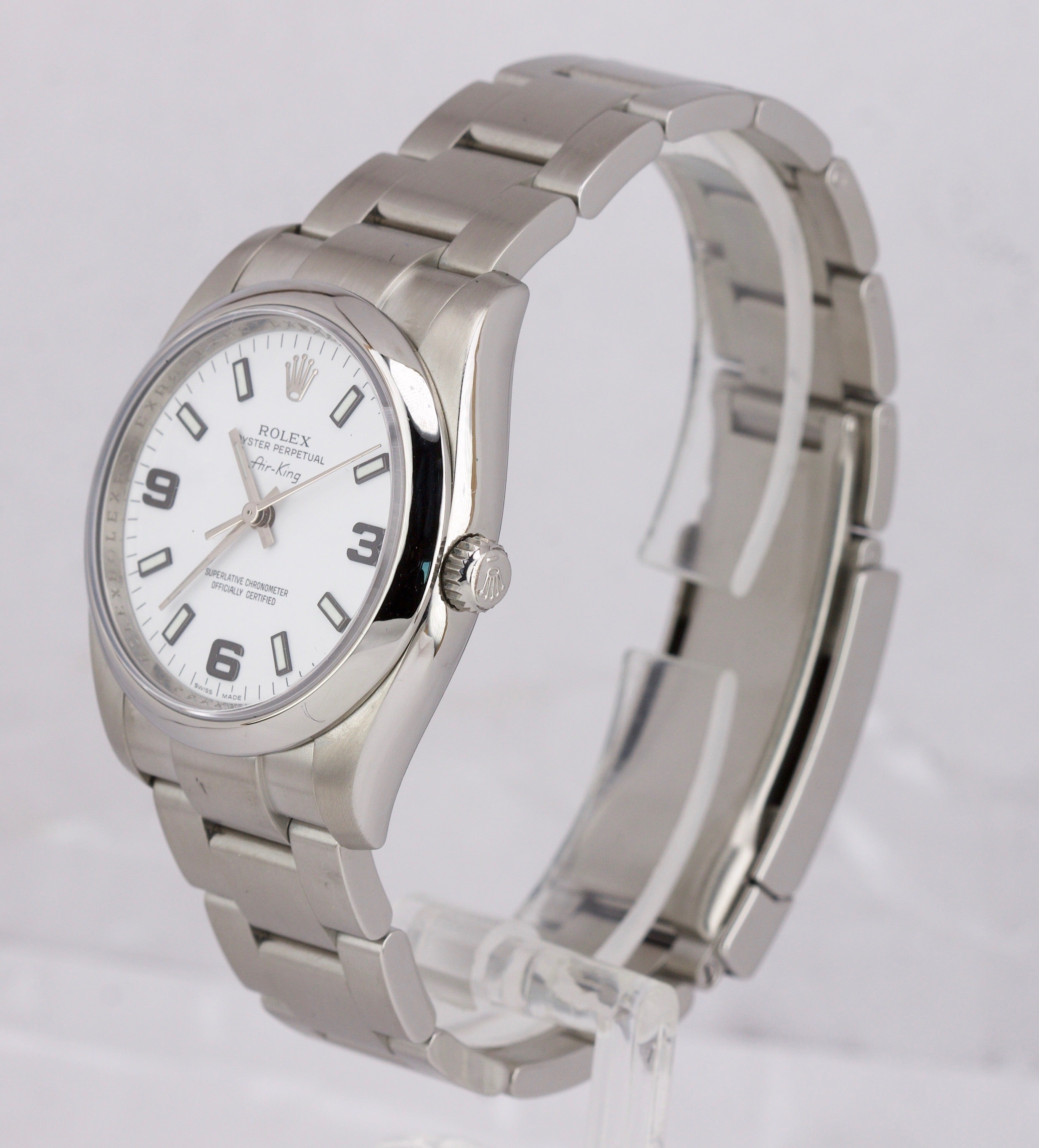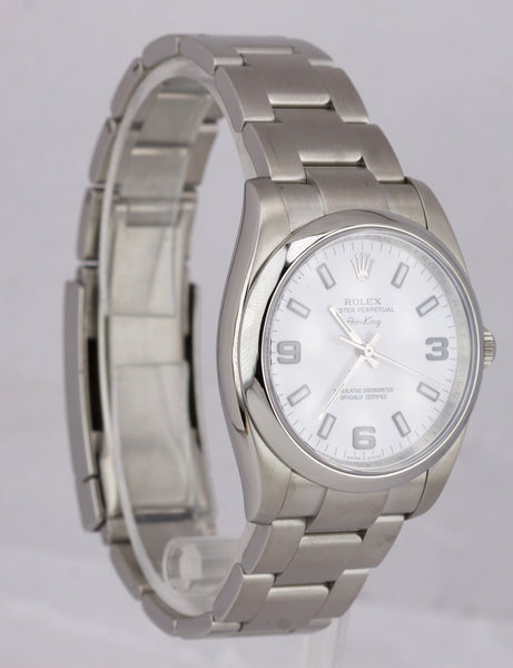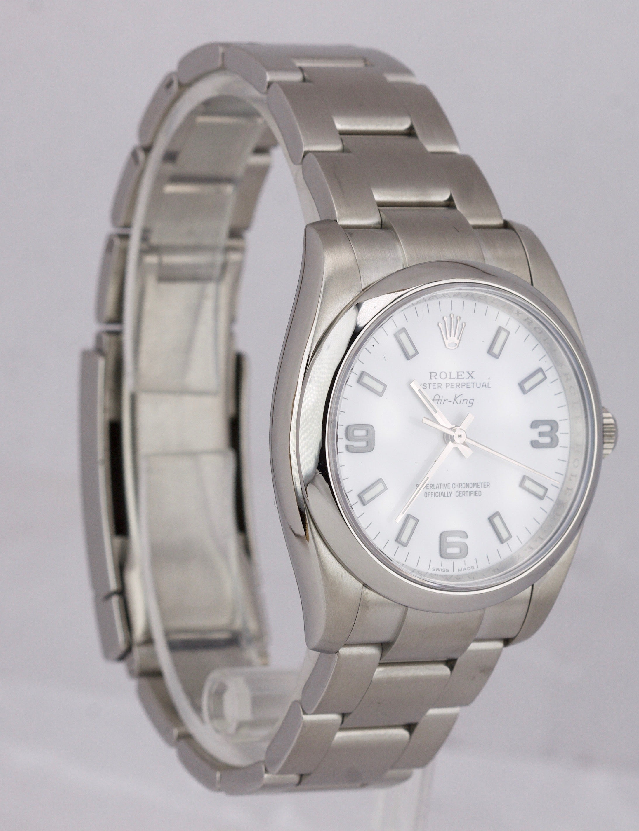 MINT Rolex Air-King Oyster Perpetual White Arabic Stick Steel 114200 34mm Watch