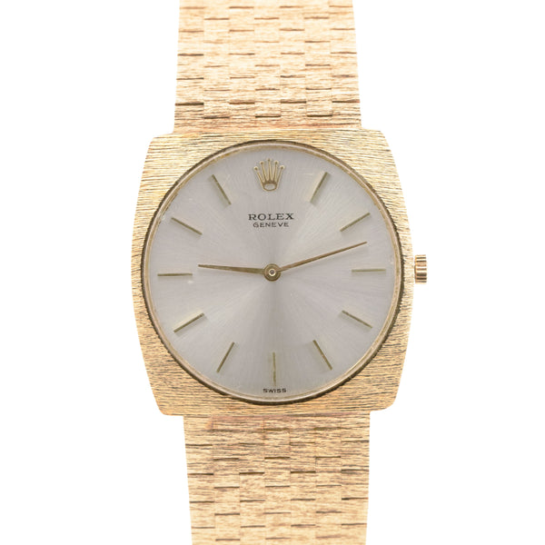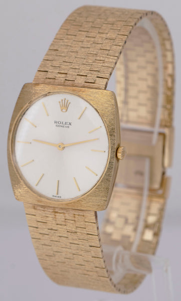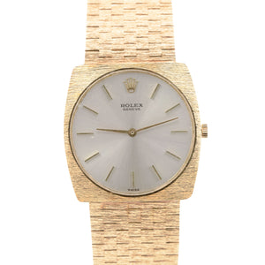 MINT Rolex Cellini 14K Yellow Gold 29mm Silver Bark Finish Manual Wind 604 BOX