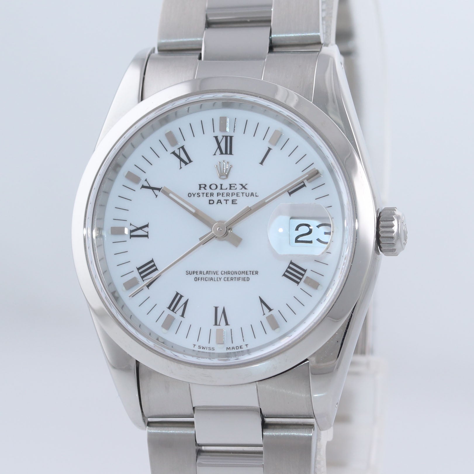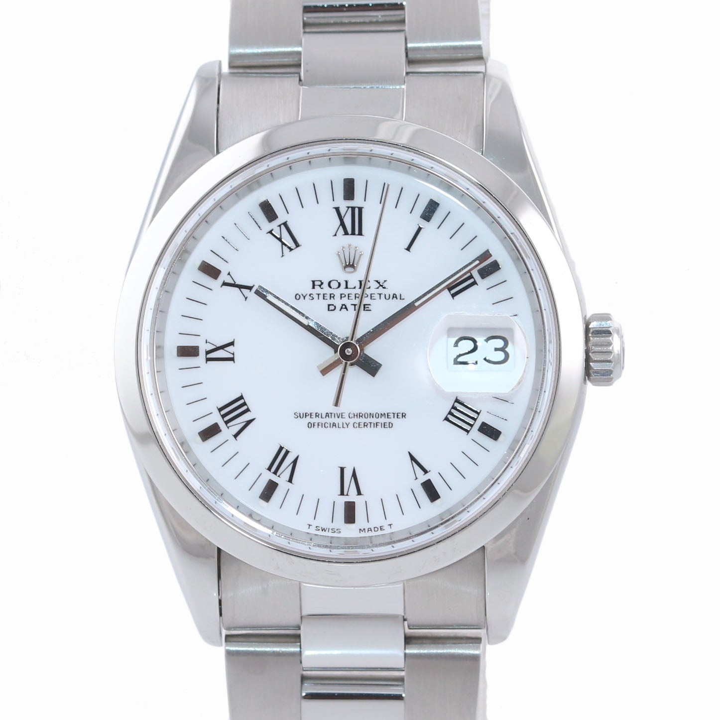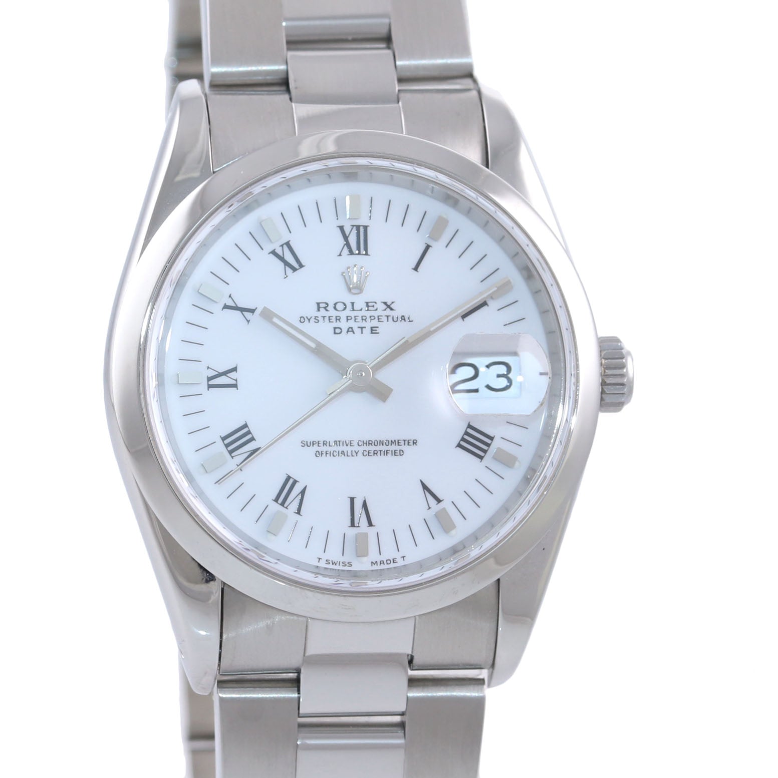 Rolex Date Oyster Perpetual Stainless Steel White Stick 15200 34mm Watch
