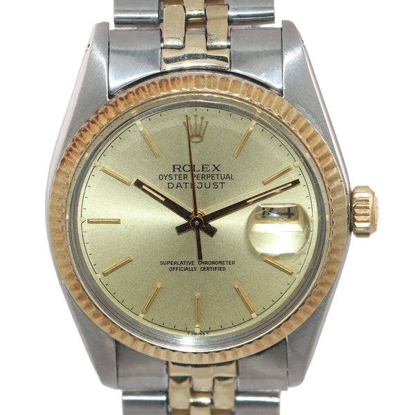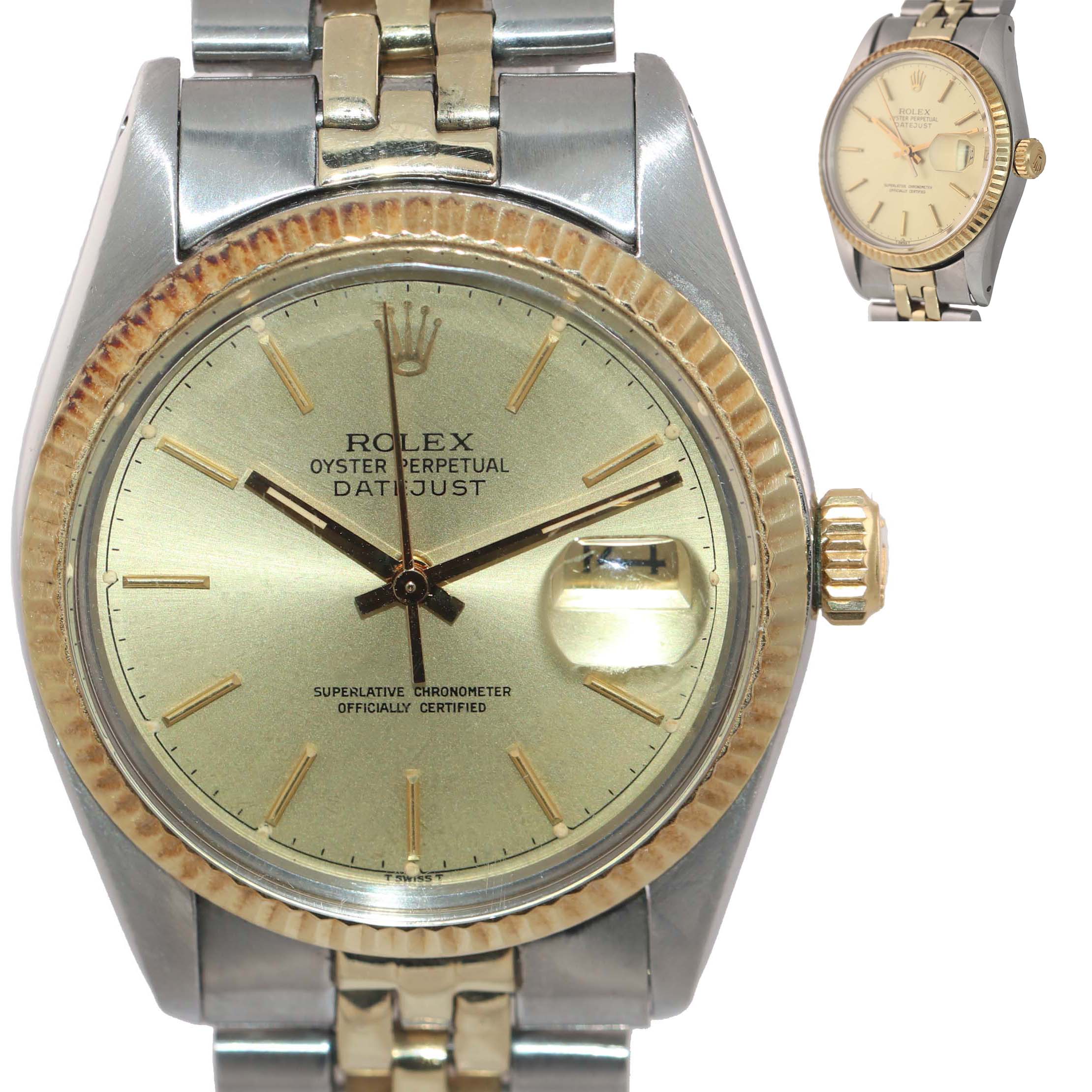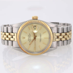 Rolex DateJust 16013 Two-Tone 18k Gold Steel Jubilee Champagne Dial Watch & Box. D9