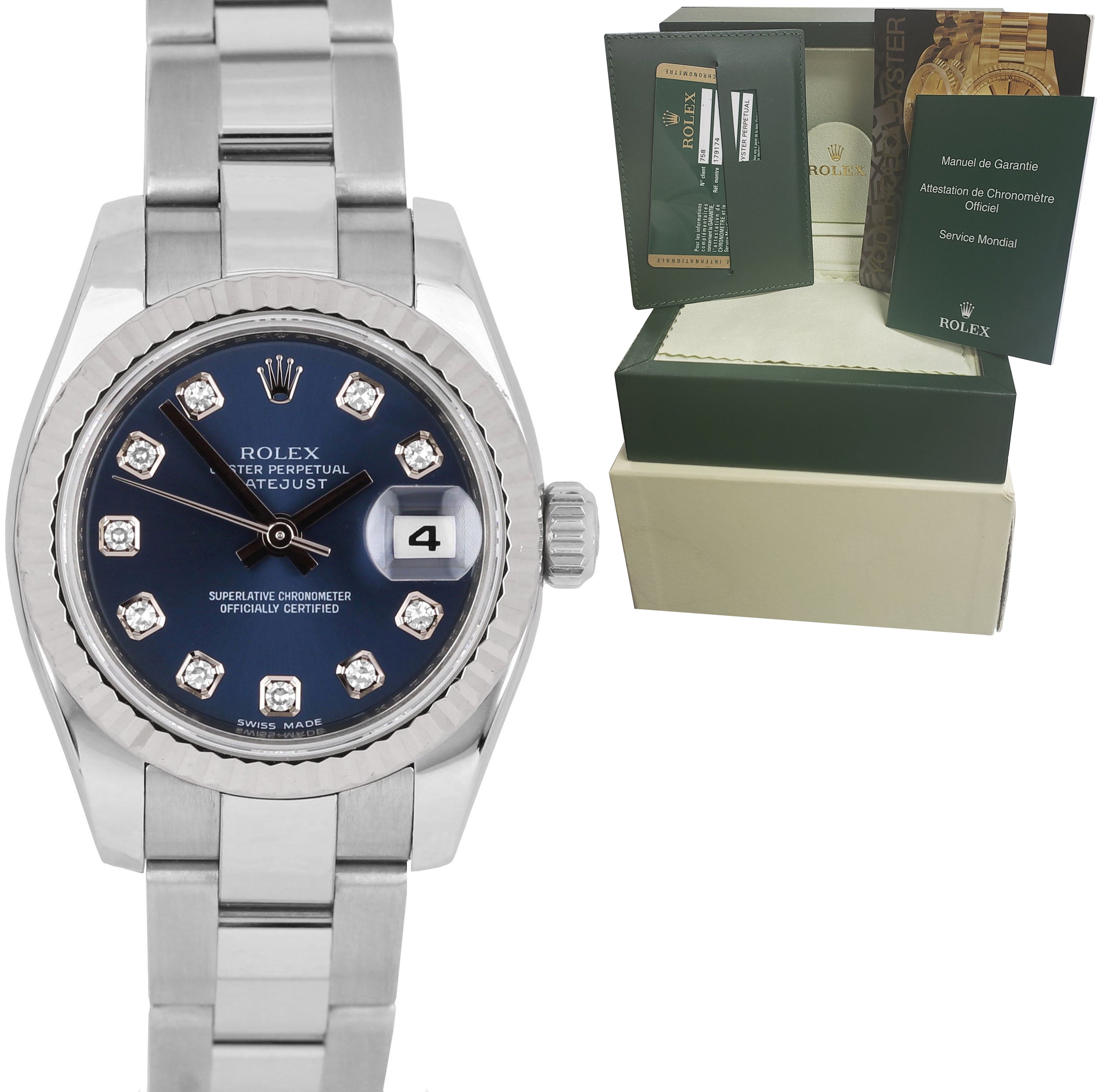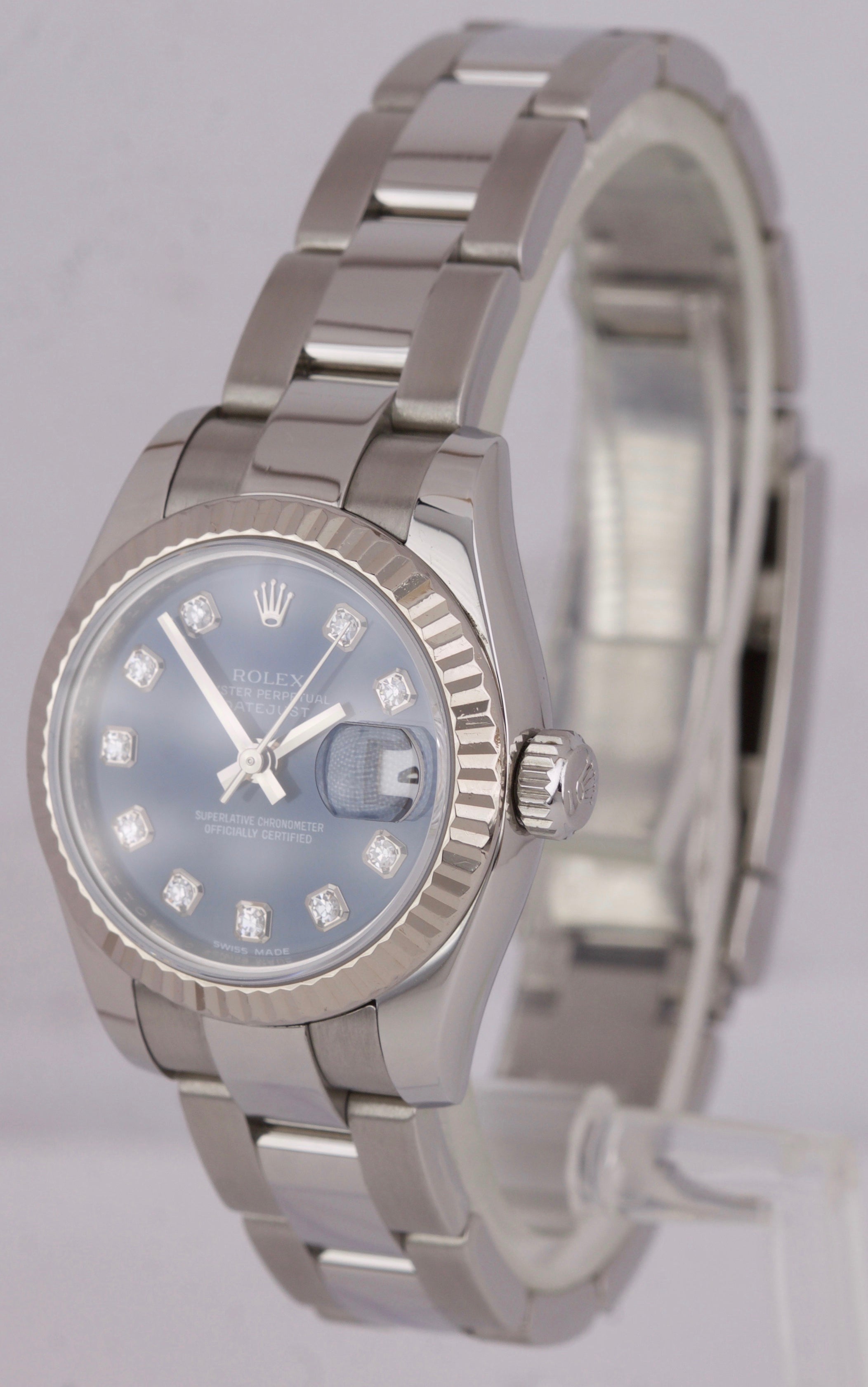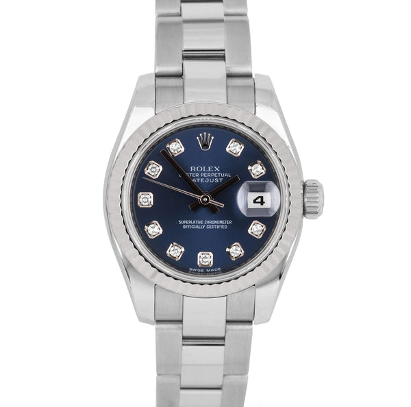 MINT Rolex DateJust 26mm REHAUT Blue Diamond Stainless Steel Date Watch 179174