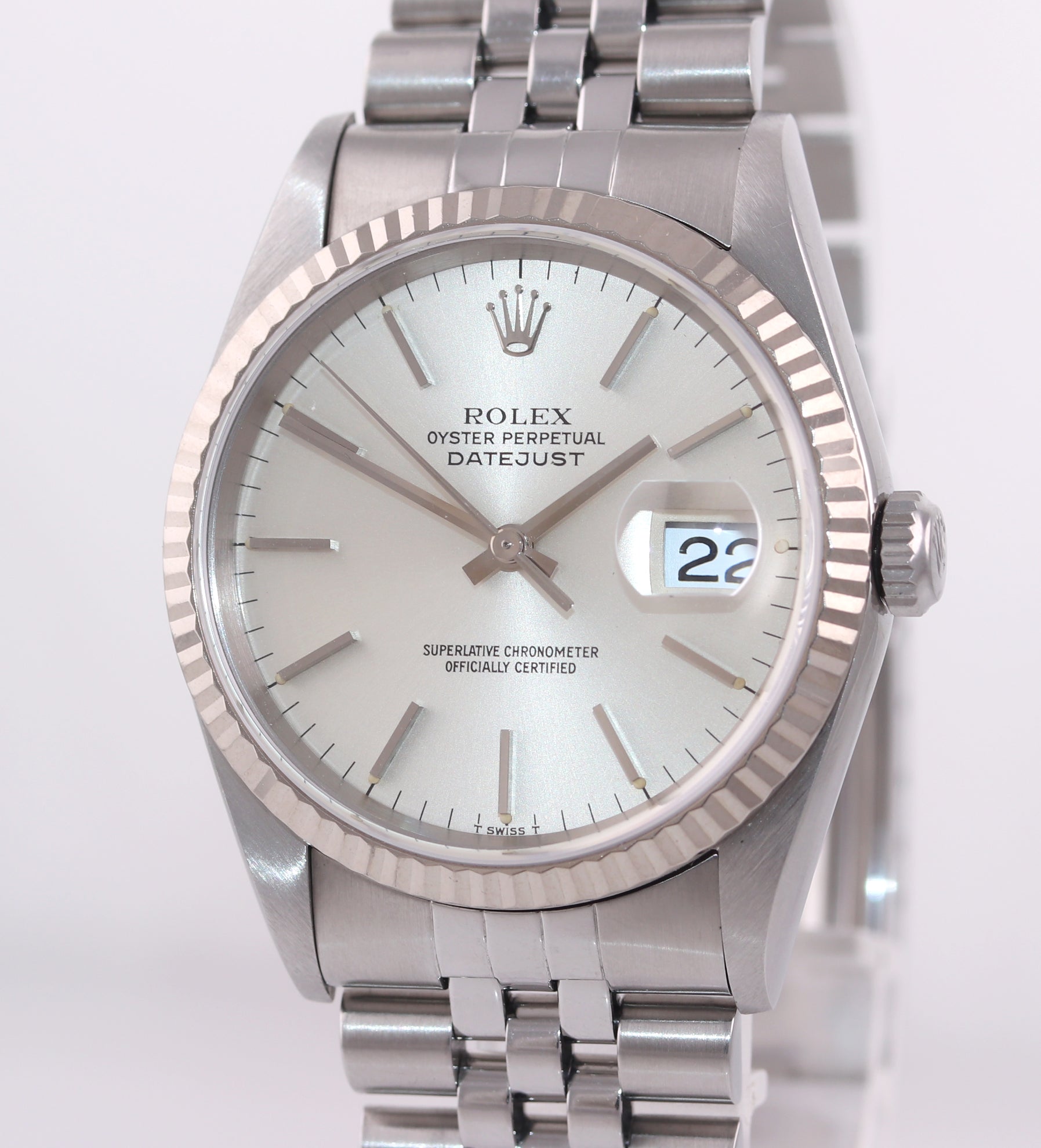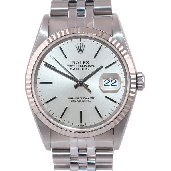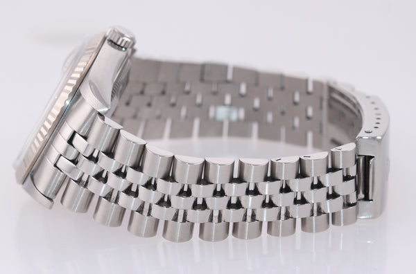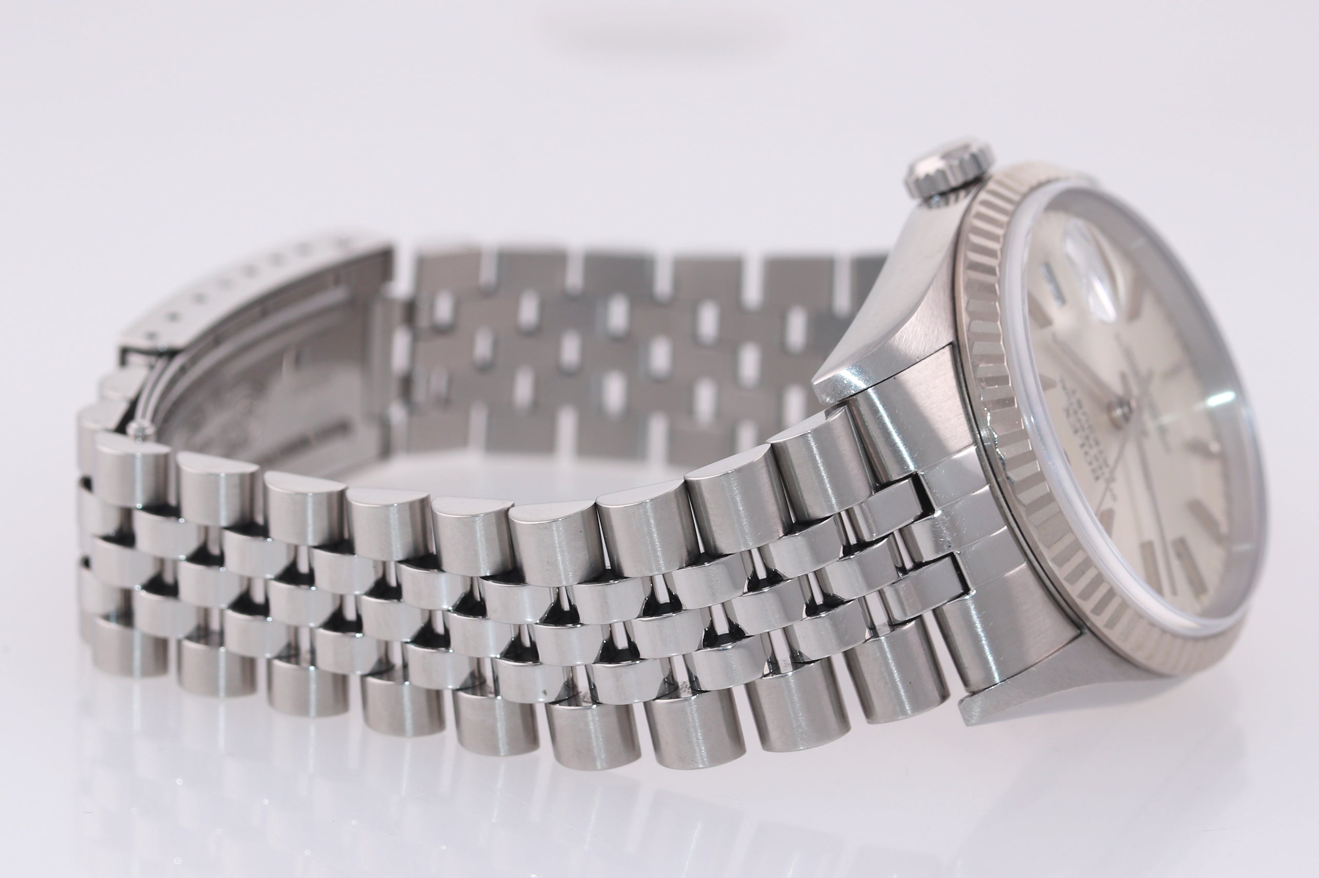 MINT Rolex DateJust 36mm 16234 Steel Silver Stick Jubilee 18k White Gold Date Watch
