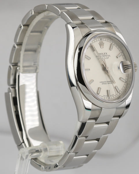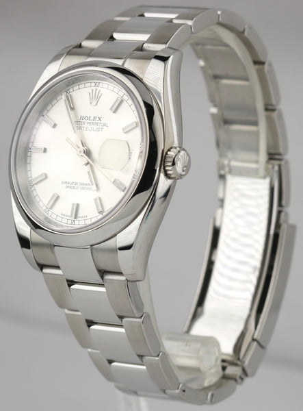 2016 MINT Rolex DateJust 36mm Silver Stick Stainless Steel Oyster Watch 116200