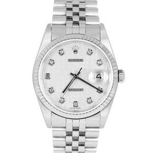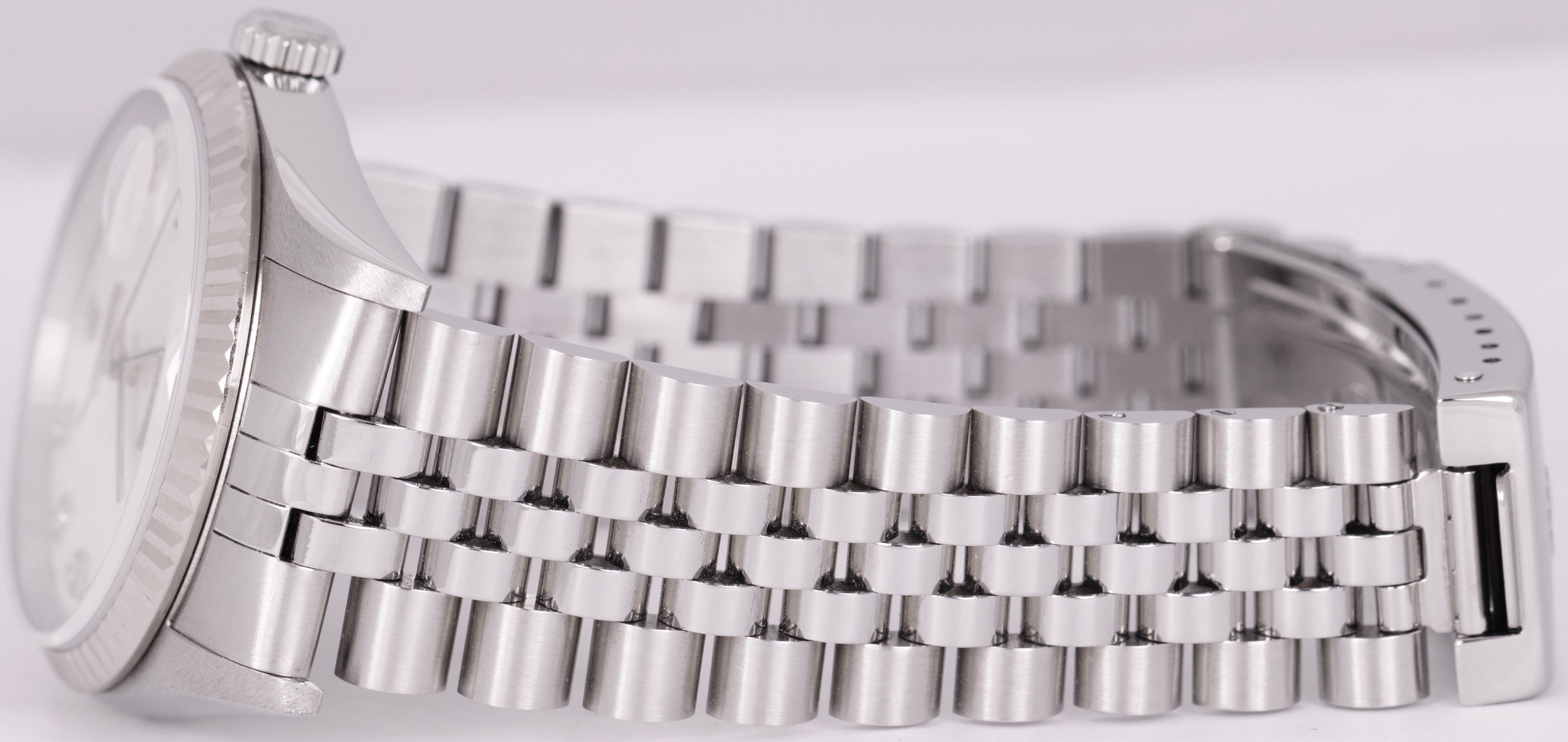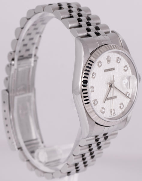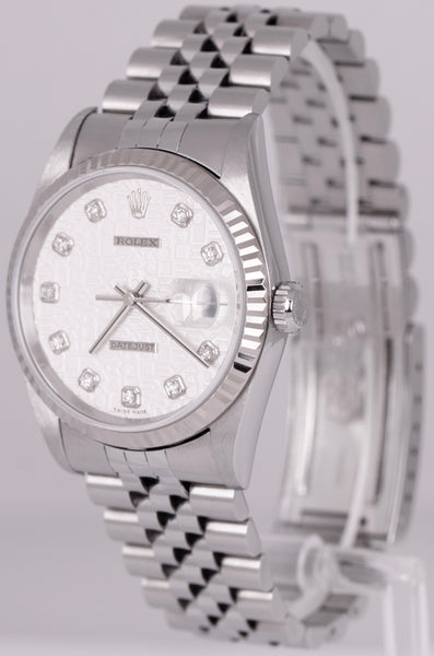 MINT Rolex DateJust 36mm White Diamond Jubilee Dial 18K Gold Steel Watch 16234