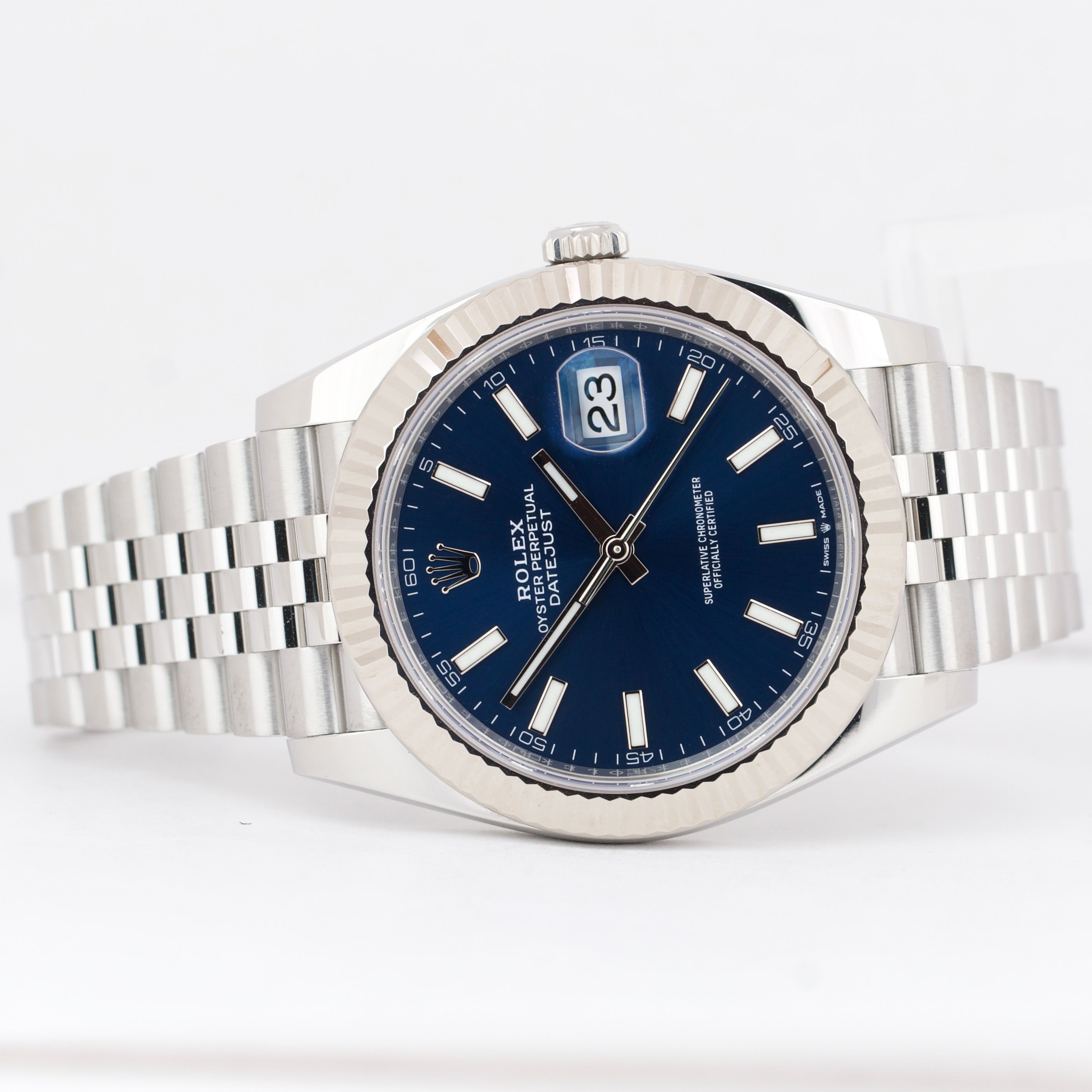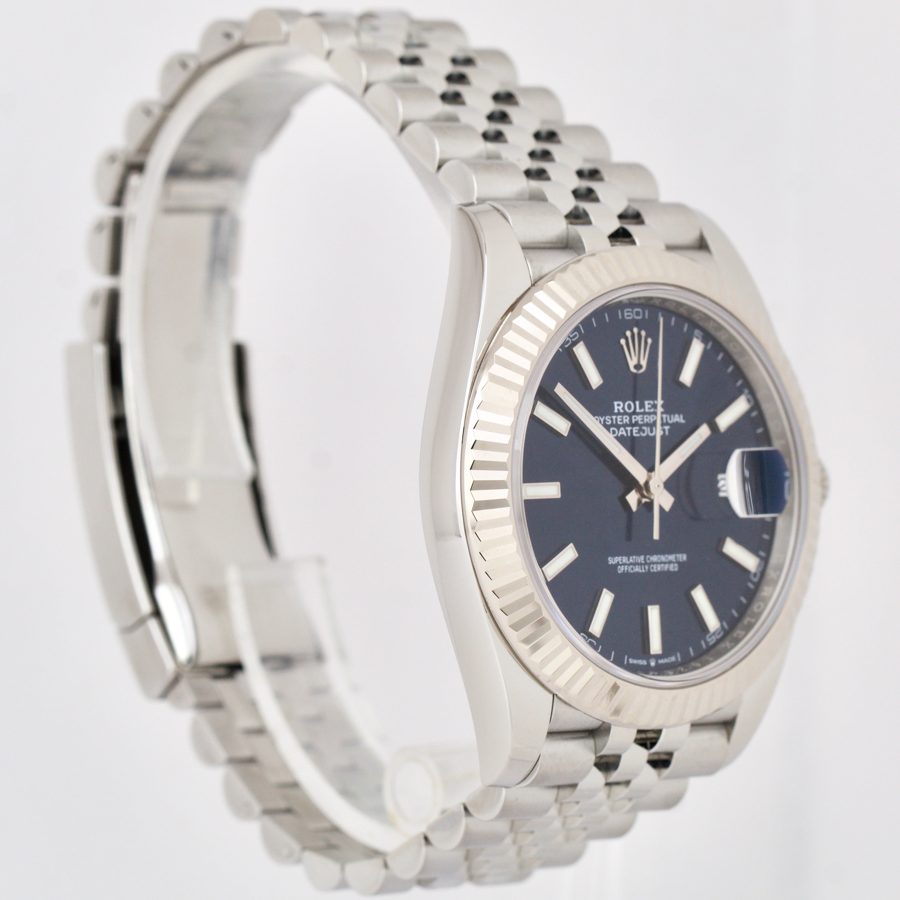 MINT Rolex DateJust 41 BLUE 18K Gold Steel JUBILEE Fluted 41mm Date Watch 126334