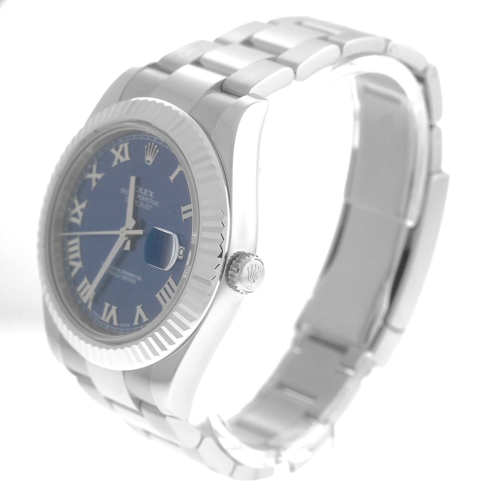 Rolex Datejust II 2 41MM Blue Azzurro Roman 116334 Stainless 18K Gold Watch