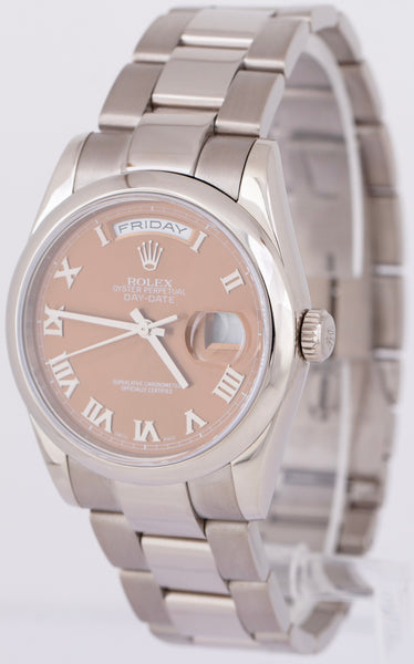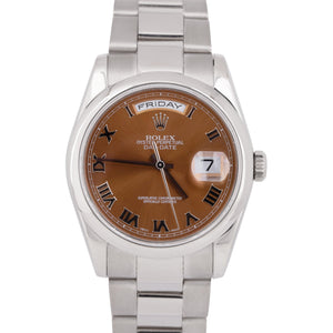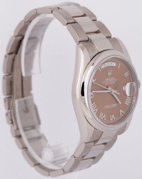 MINT Rolex Day-Date 36mm Bronze Copper Roman Dial 18k White Gold Watch 118209