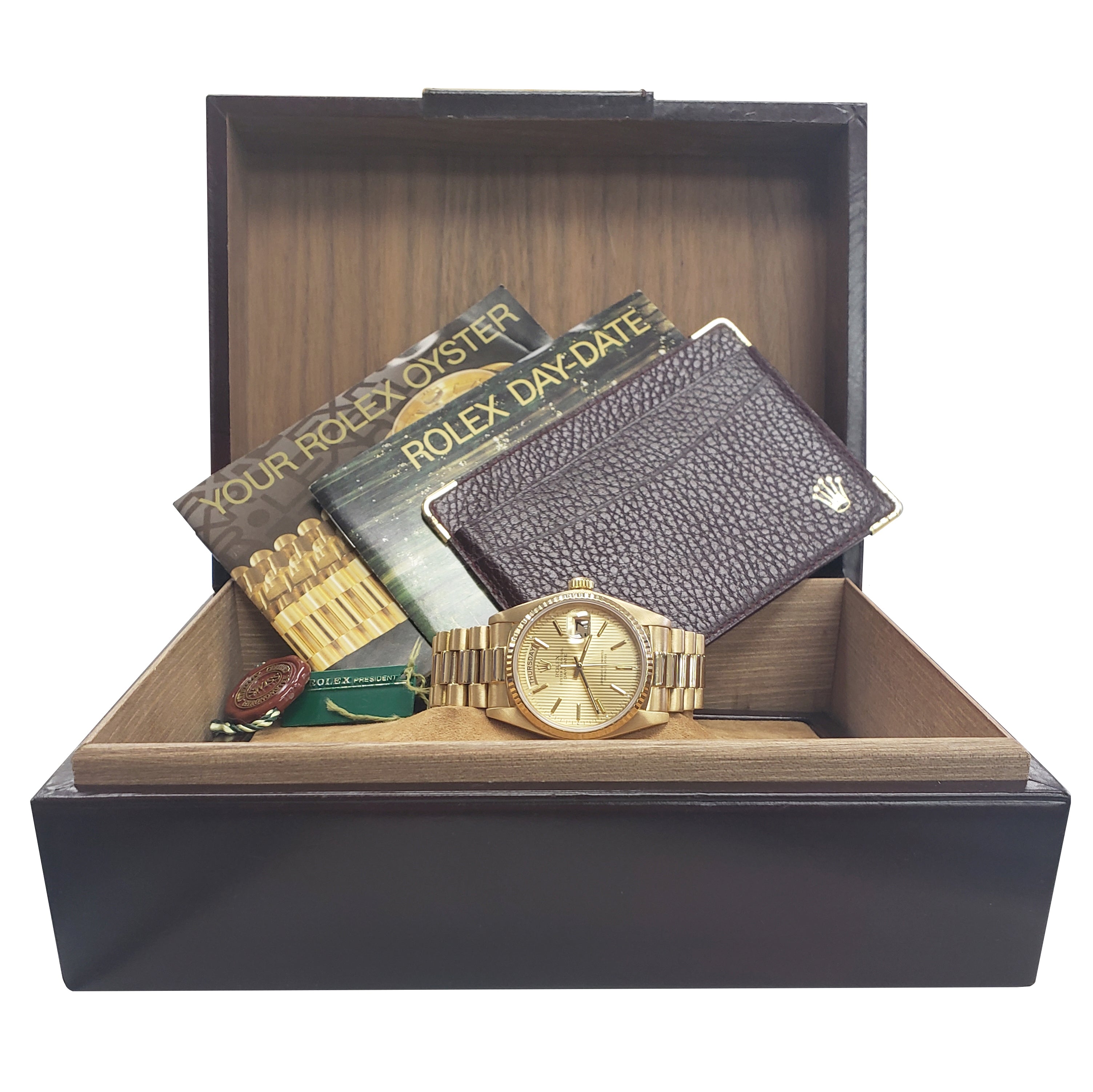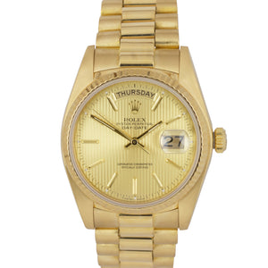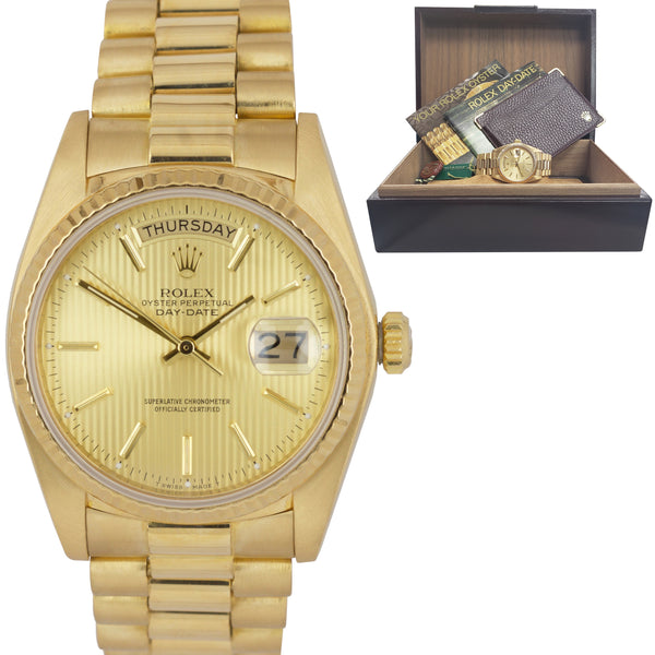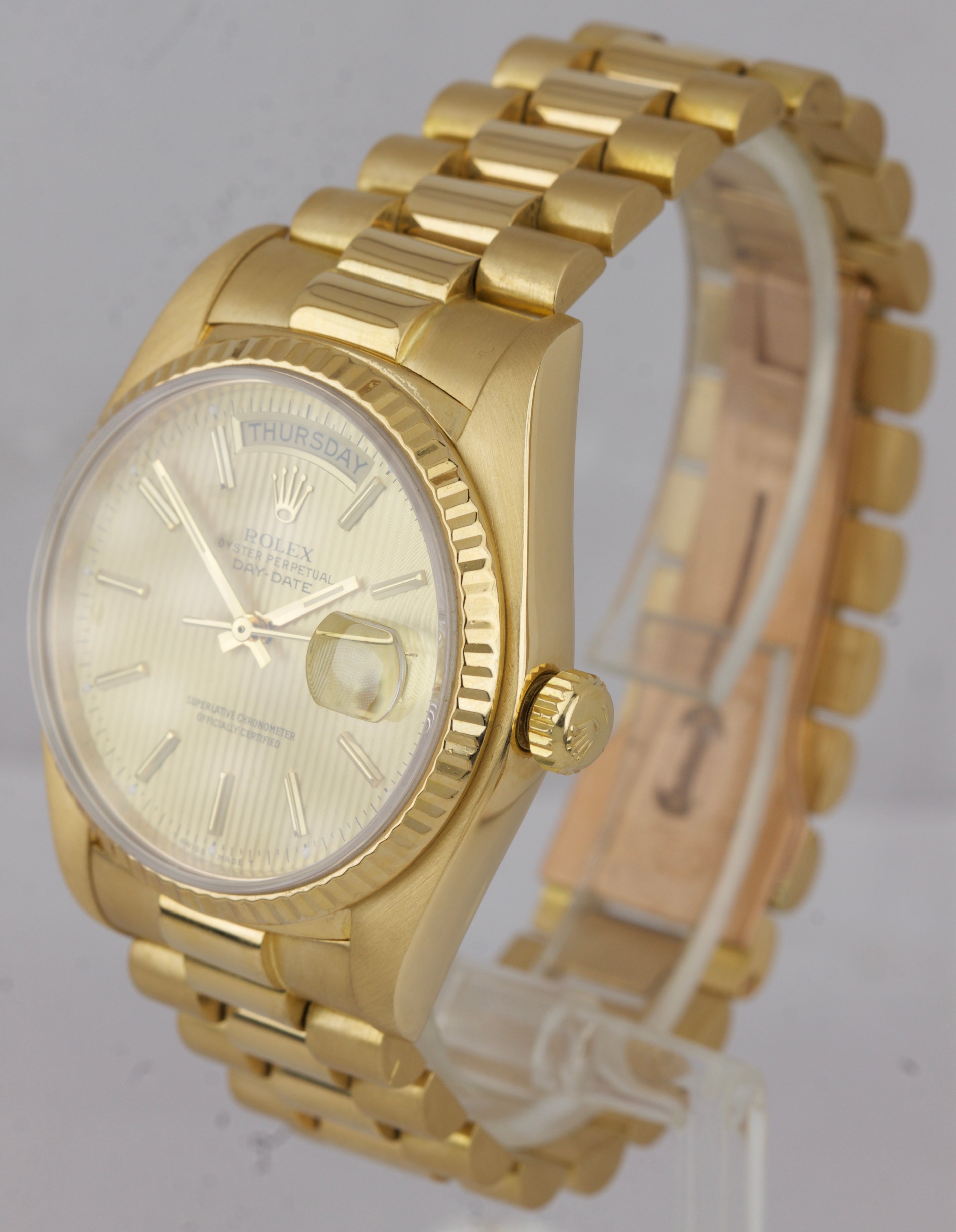 MINT Rolex Day-Date President 36 Champagne Tapestry 18K Yellow Gold Watch 18038