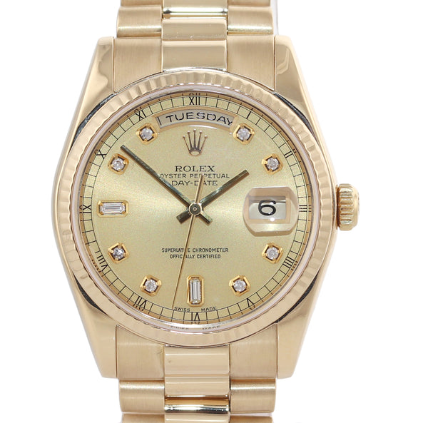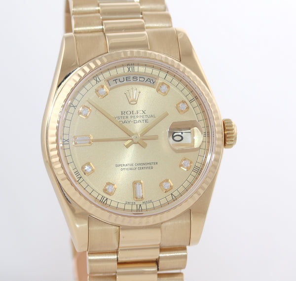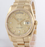 Rolex Day-Date President Heavy Band 18K Gold Diamond Dial 118238 Watch