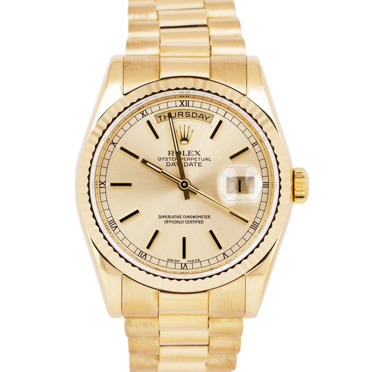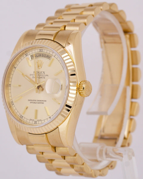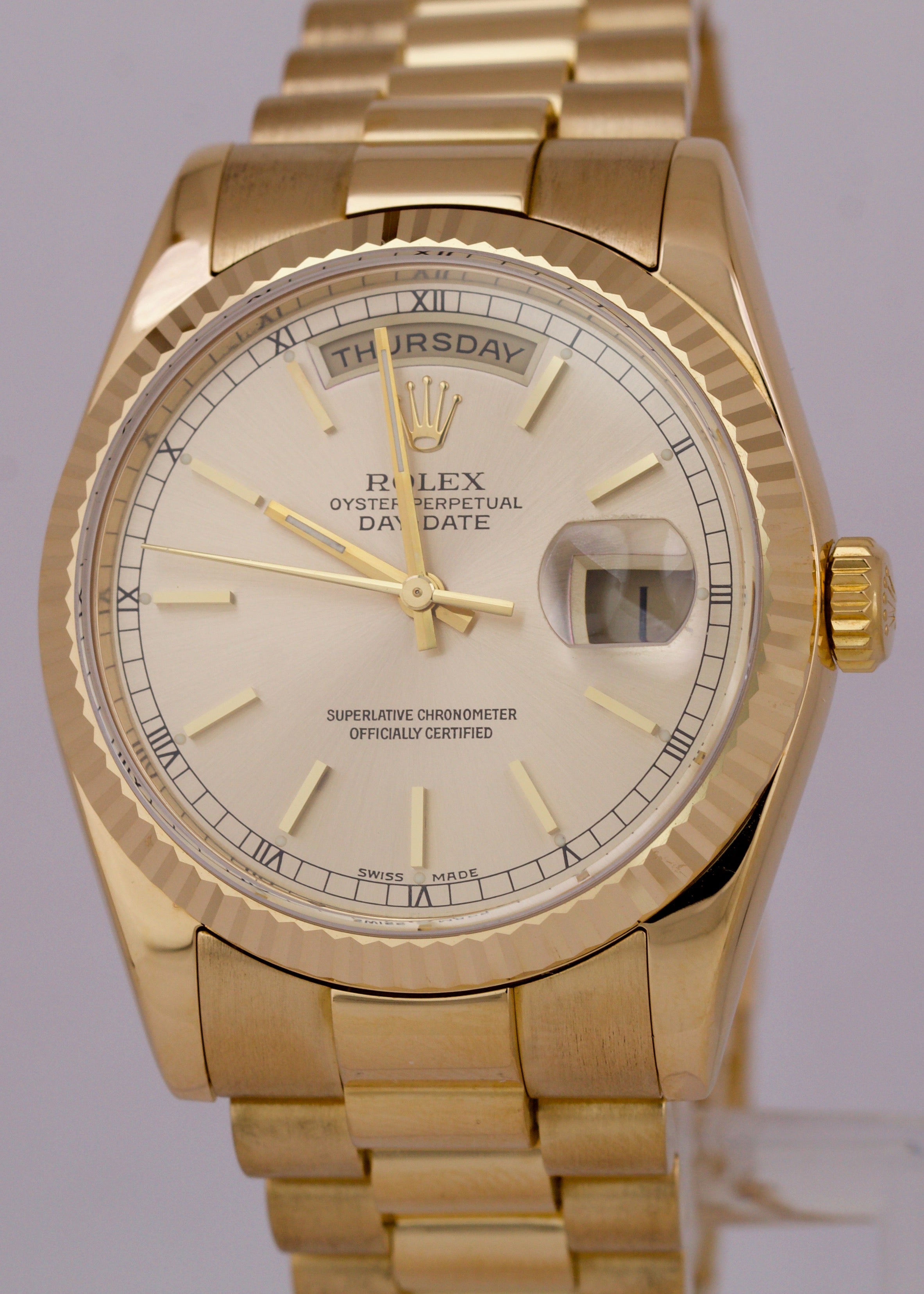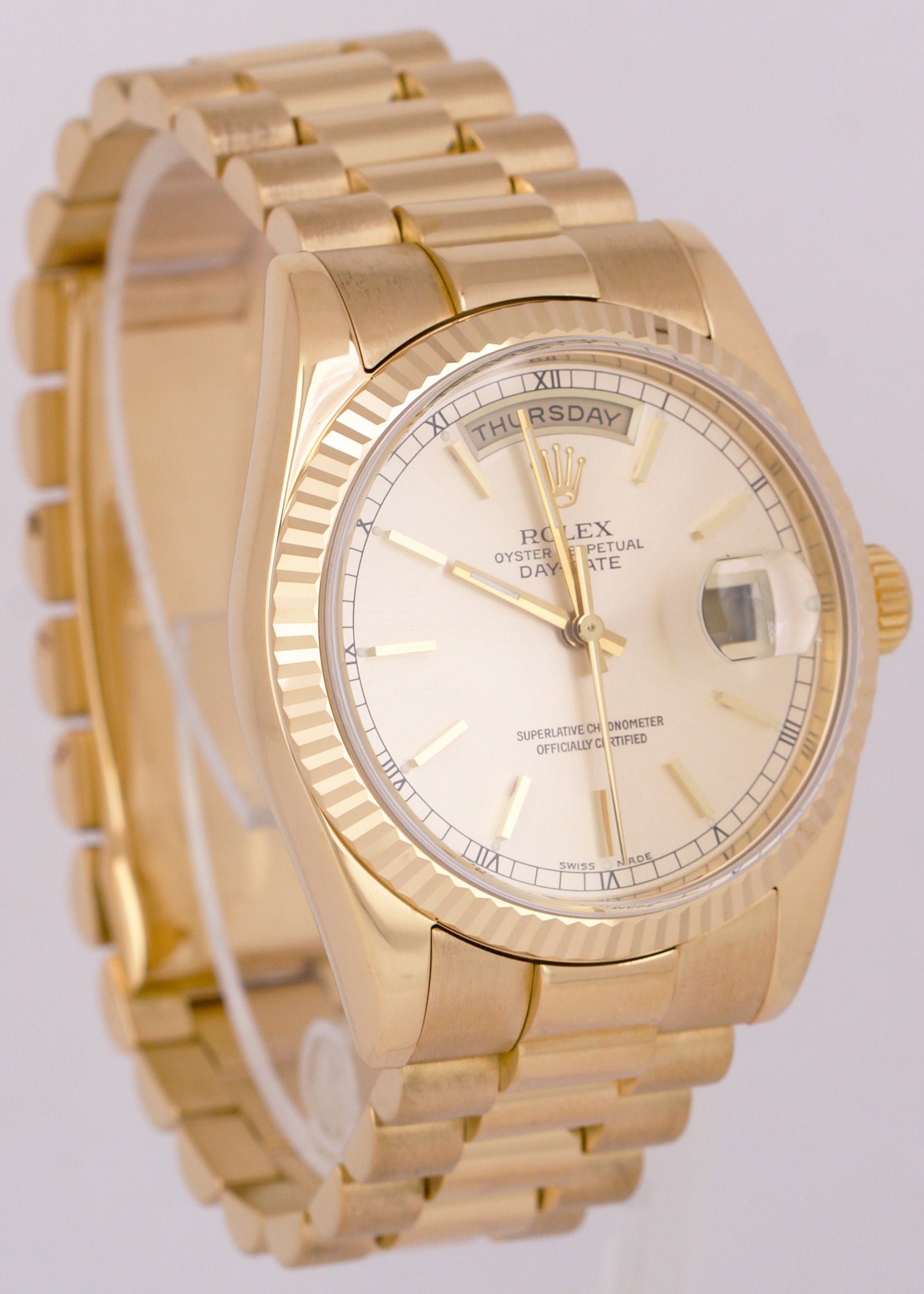 MINT Rolex Day-Date President SILVER 18K Yellow Gold 36mm Fluted 118238 Watch