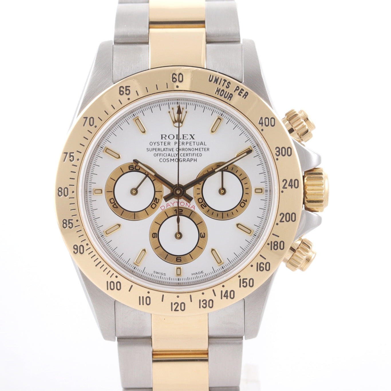 MINT Rolex Daytona 16523 Zenith Two Tone 18 Yellow Gold White Dial SEL bracelet